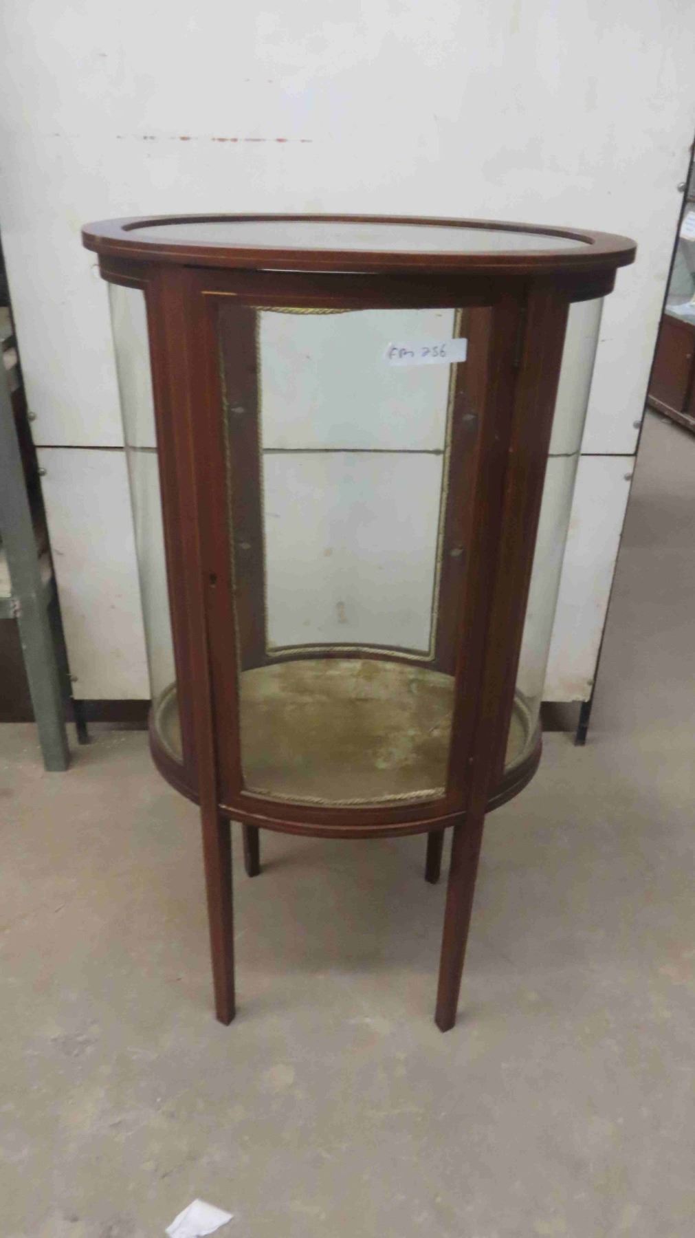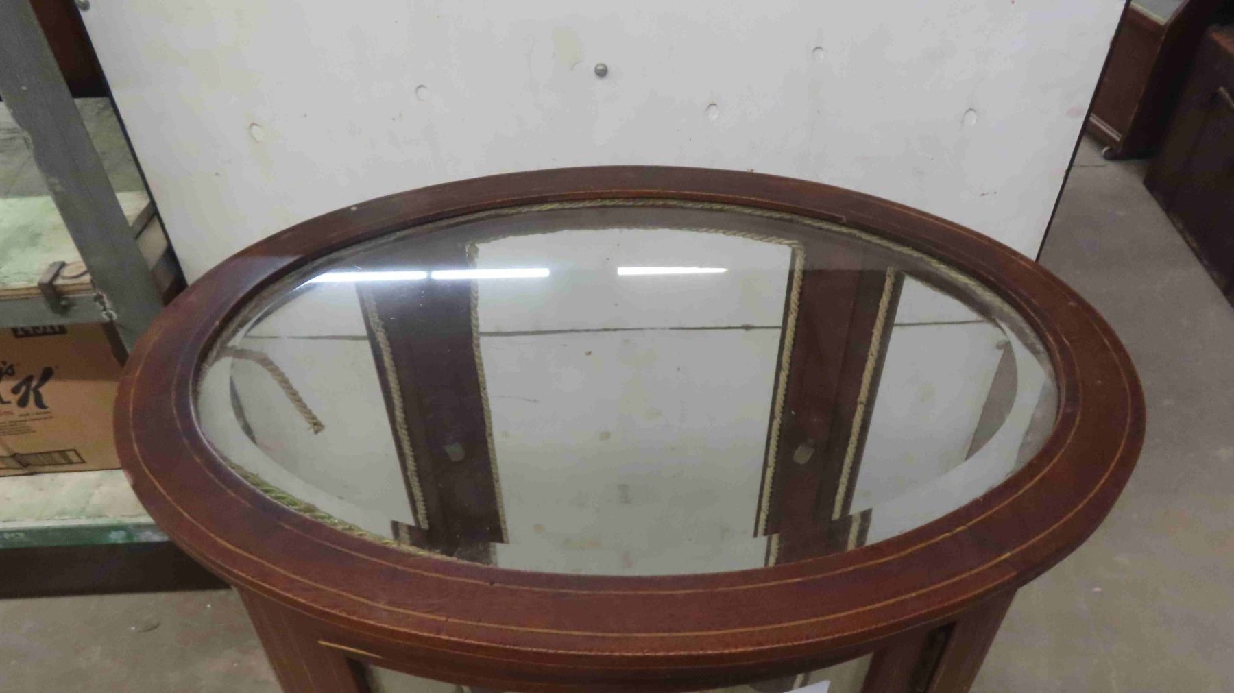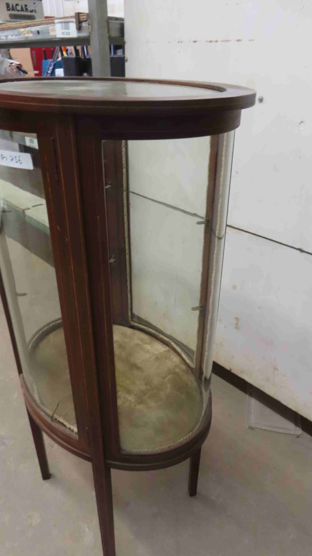 C.1860 Mahogany Oval China Cabinet with Curved Glass - 1 Glass Panel Has Break - Has Shelves (1) Glass Shelf 48'' x 28'' x 19''