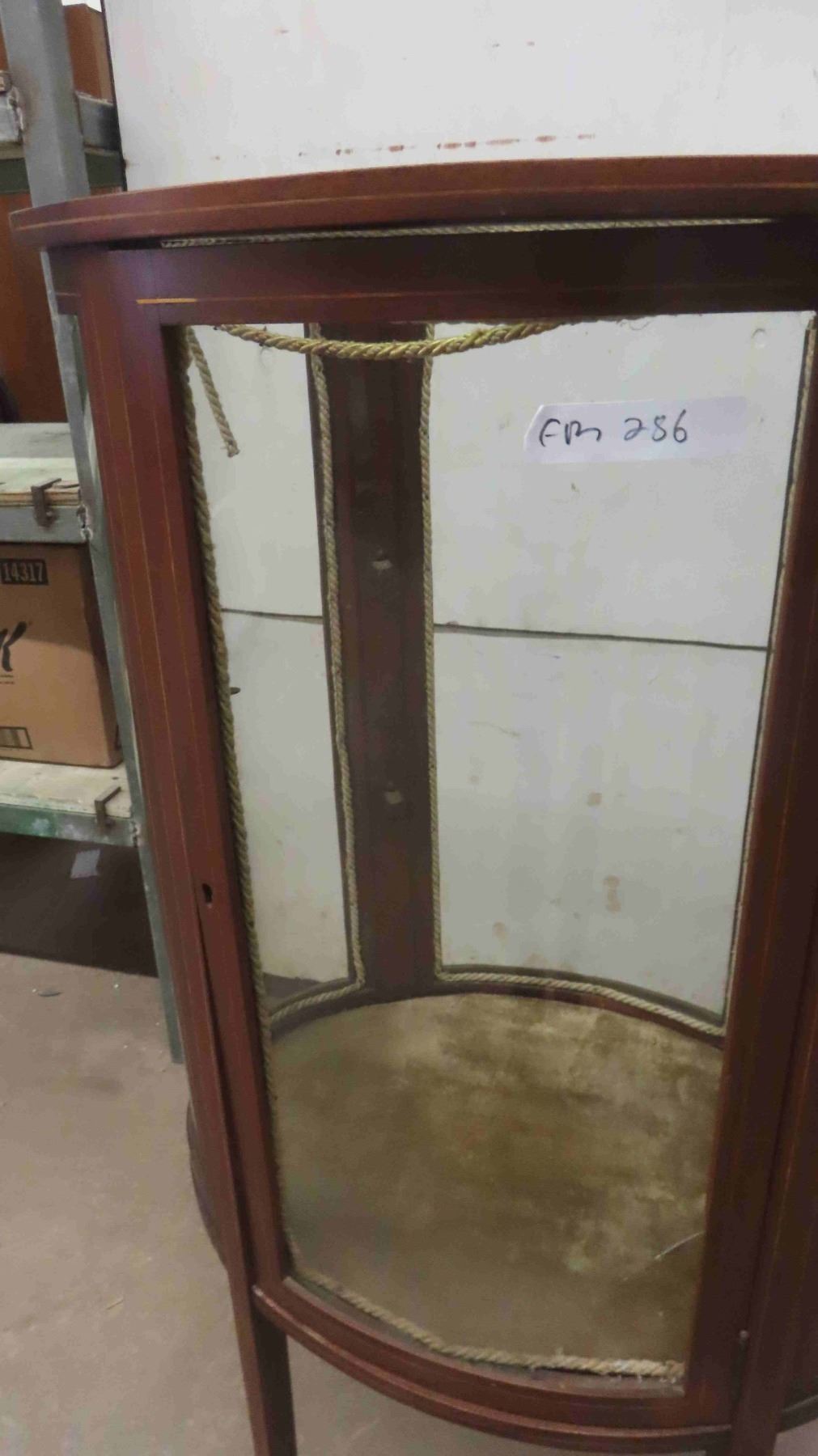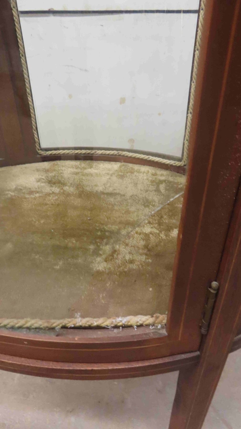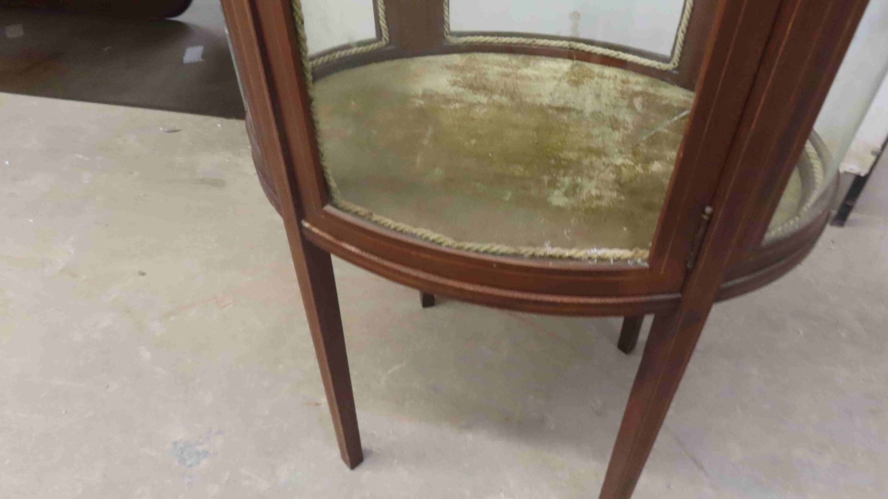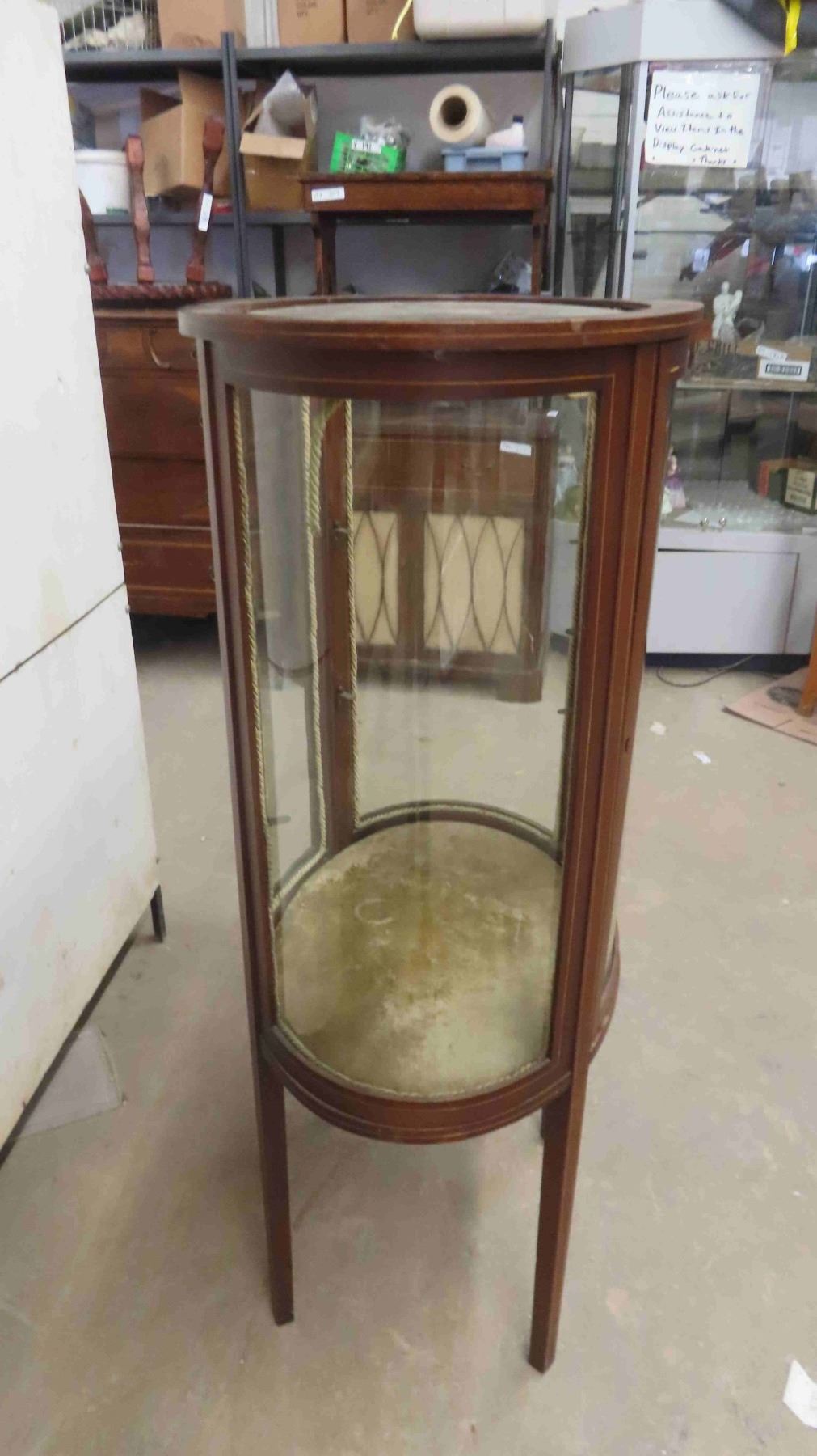 C.1860 Mahogany Oval China Cabinet with Curved Glass - 1 Glass Panel Has Break - Has Shelves (1) Glass Shelf 48'' x 28'' x 19''
