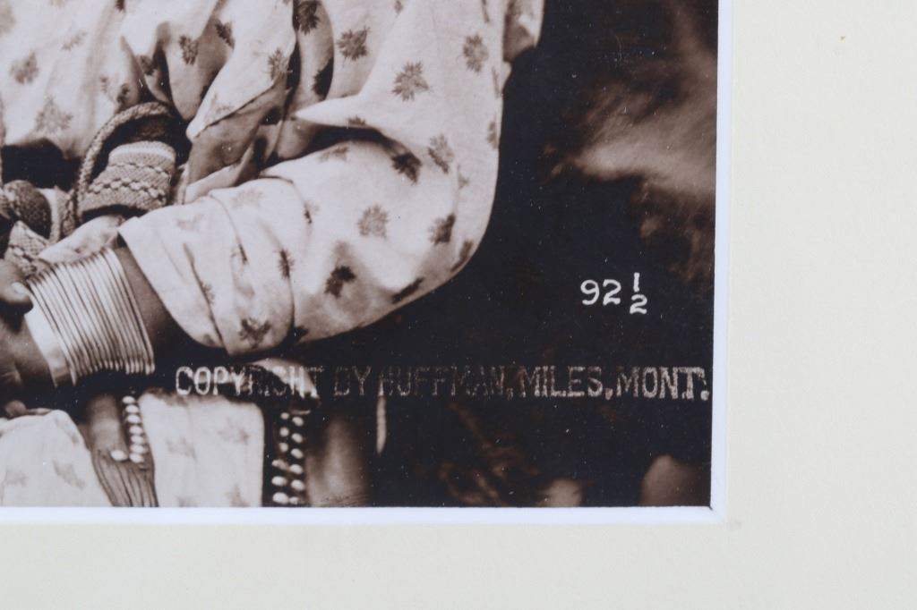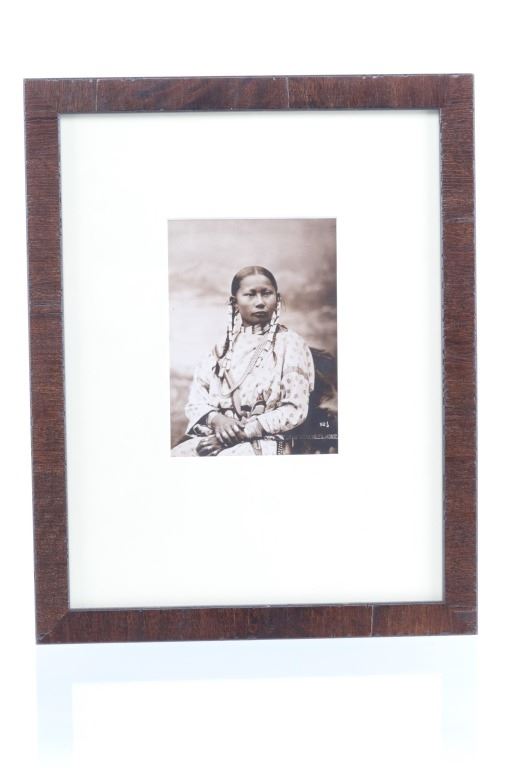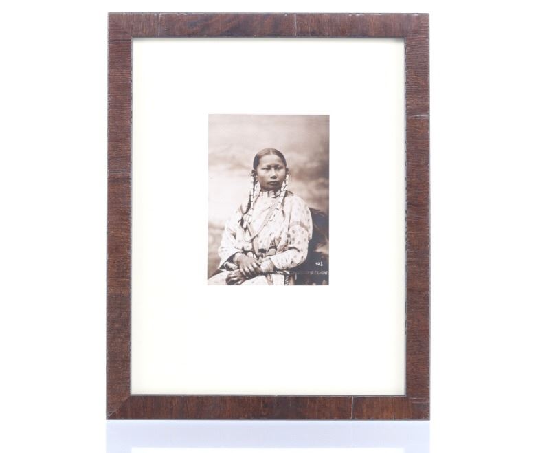 This is an original circa 1878 photography by L.A. Huffman (b.1854-d.1931) of Spotted Fawn, a Cheyenne Girl of 13 years. The photograph features a young girl of 13 named Spotted Fawn from the Cheyenne Indians dressed in traditional garments and posing regally and is from circa 1878 (source: Montana Memory Project). The catalog listing is featured on the back of the frame. L.A. Huffman wad appointed post photographer at Fort Keogh, a military post established shortly after the Custer incident in 1876 to provide a military presence in eastern Montana, which was an unpaid position that provided a dirt floor log studio and an opportunity to make and sell photographs. He is well renowned for taking photos of the Frontier and Native American life. The condition of this framed photograph is good with no obvious signs of damage and in good overall condition. The measurements of this original L.A. Huffman photograph are 12 1/2" x 10 7/8" and the visible art measures 5 1/8" x 3 5/8". Provenance: From the renowned Sundog Fine Art Bozeman, Montana collection and collected by Bruce VanLandingham. Bruce VanLandingham was a pillar in the American Indian collecting community and a respected expert. Along with being an avid collector, Bruce also was the sole owner of Sundog Fine Art Gallery in Bozeman, which was both part museum and gallery.