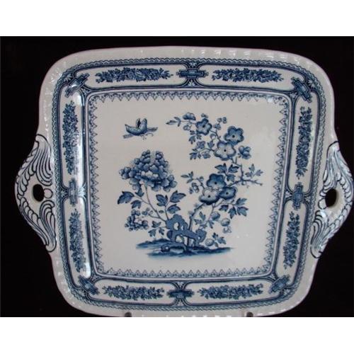 Circa 1880 Mason's of England 9" Square Plate with nice side handles. Mason's Transferware was very popular in the late 19th century and their were many patterns made, especially blue and white. There is a number on the back, #66861 which is probably a identifying number for the pattern.