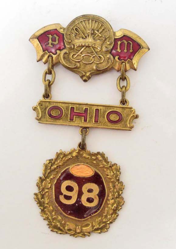 Top is marked P M with a crown in the center. The middle reads OHIO and the bottom reads 98. Approx. 3" tall