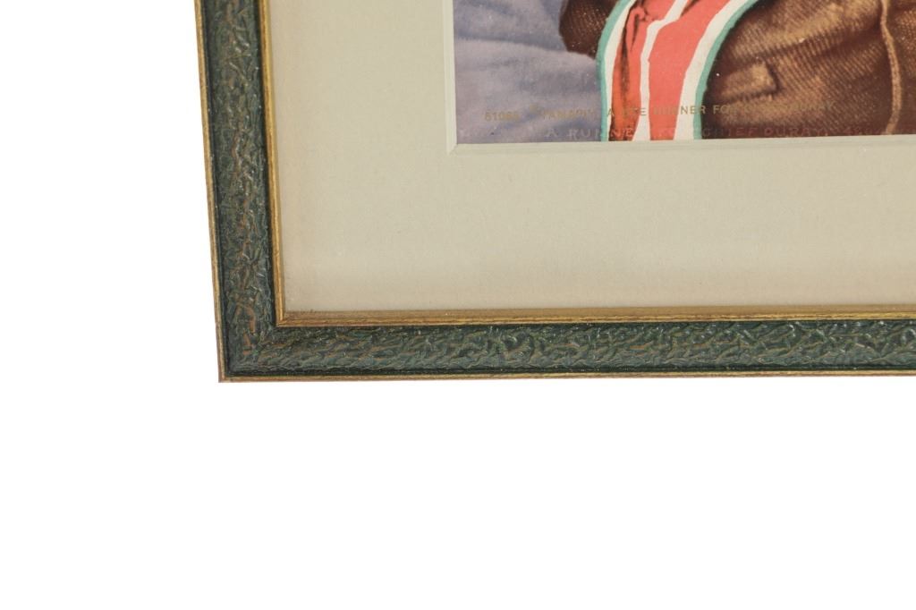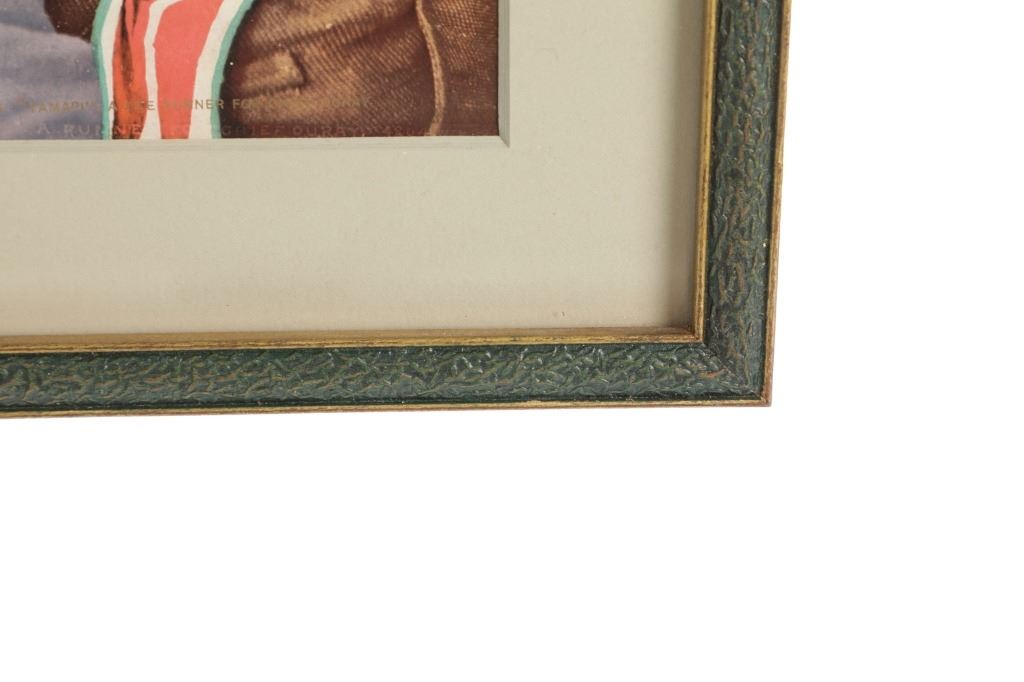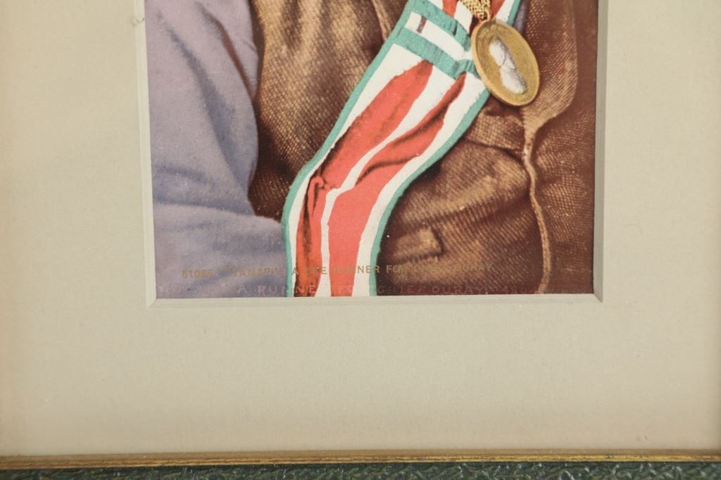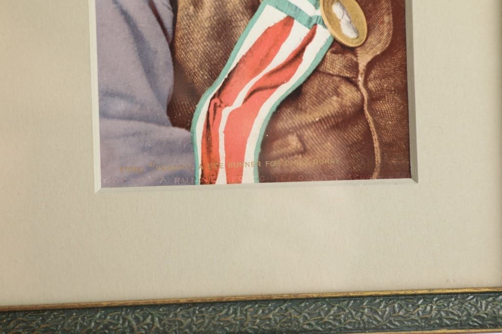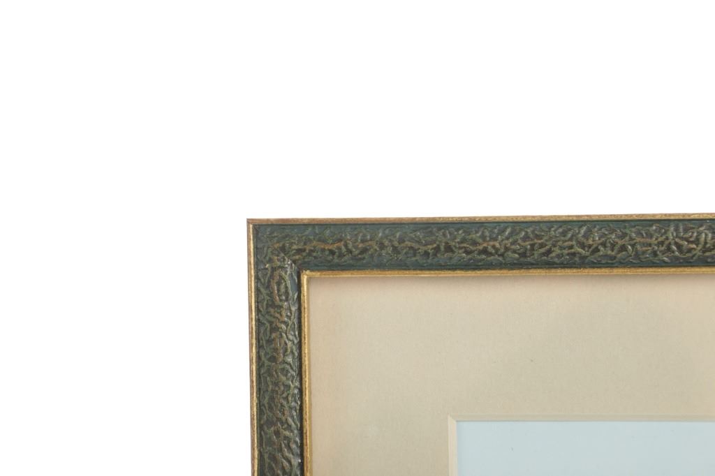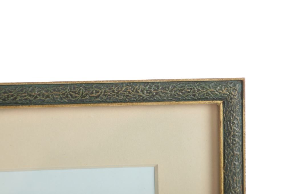 The photograph sits in a green and gilt colored matted frame, no damage or marring is noted to either, in overall good condition. Visible image measures 7"L x 3.5"W, frame 10.25"L x 6.75"W