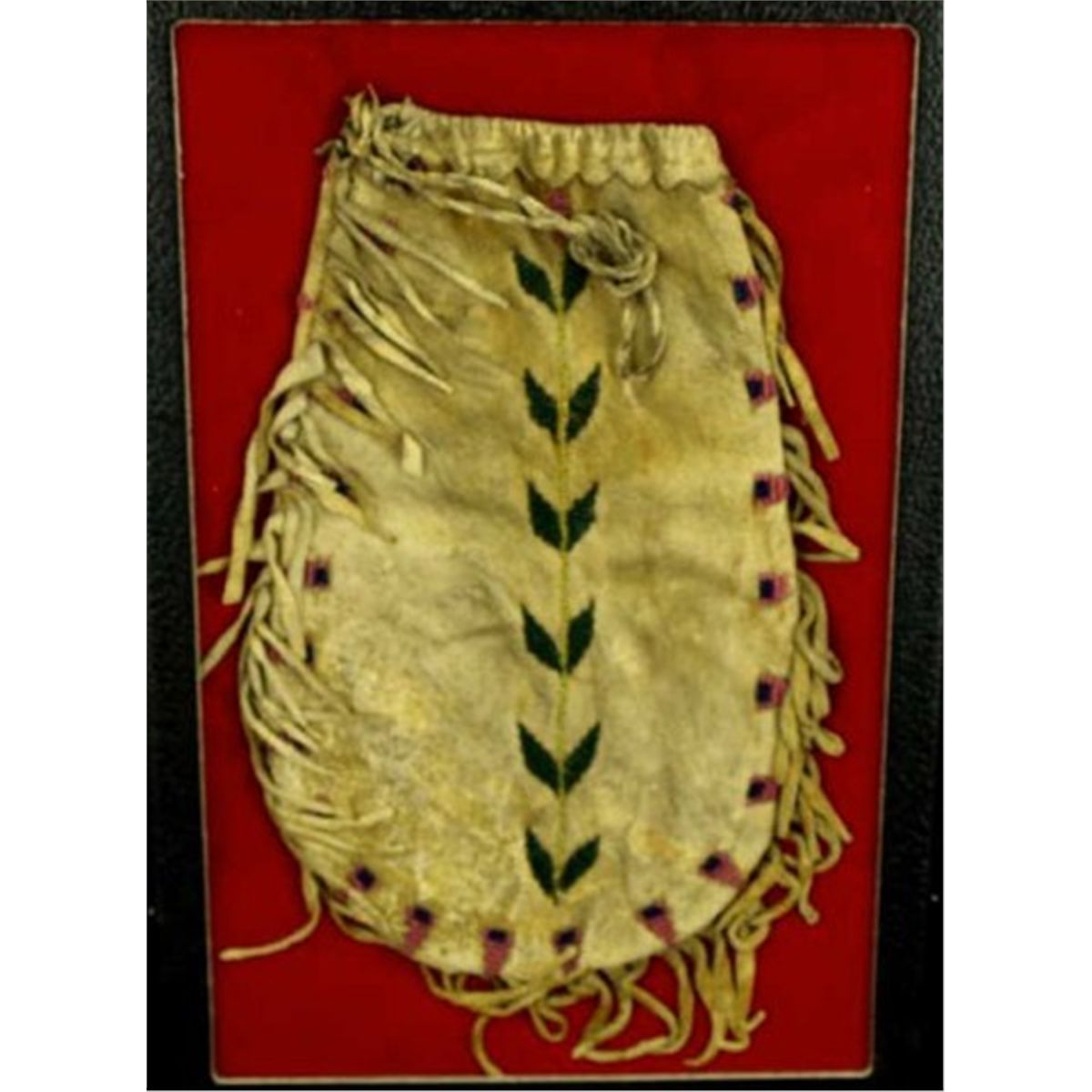 C.1880's Arikara beaded and fringe drawstring bag 11" long including fringe, remains overall very good condition.