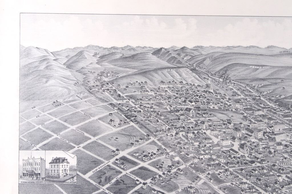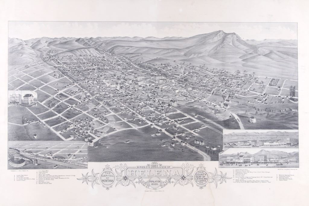 C. 1883 Helena, Montana J.J. Stoner Birds Eye Map