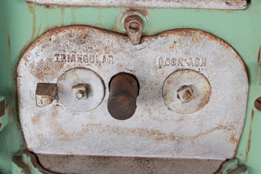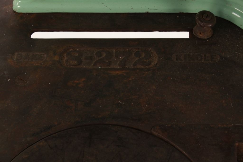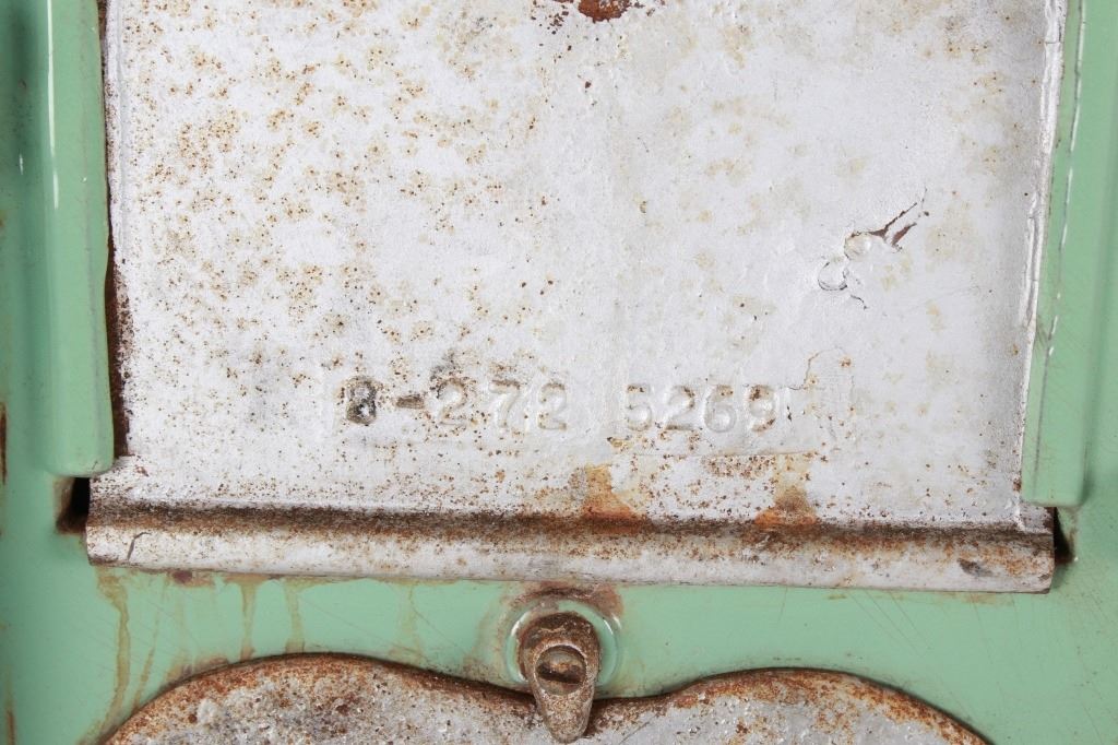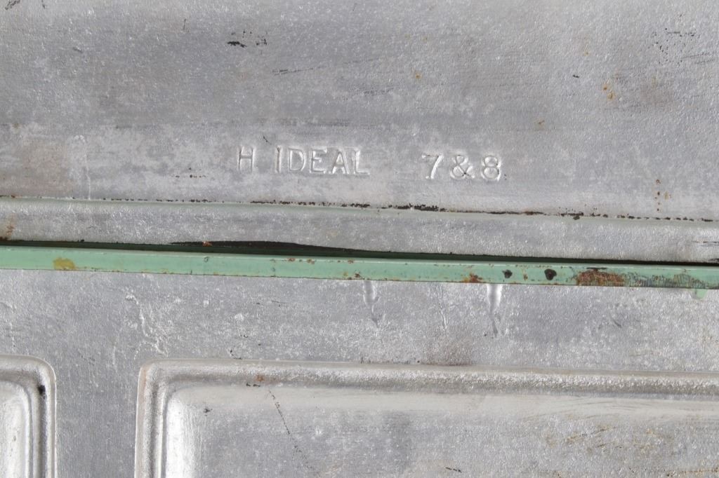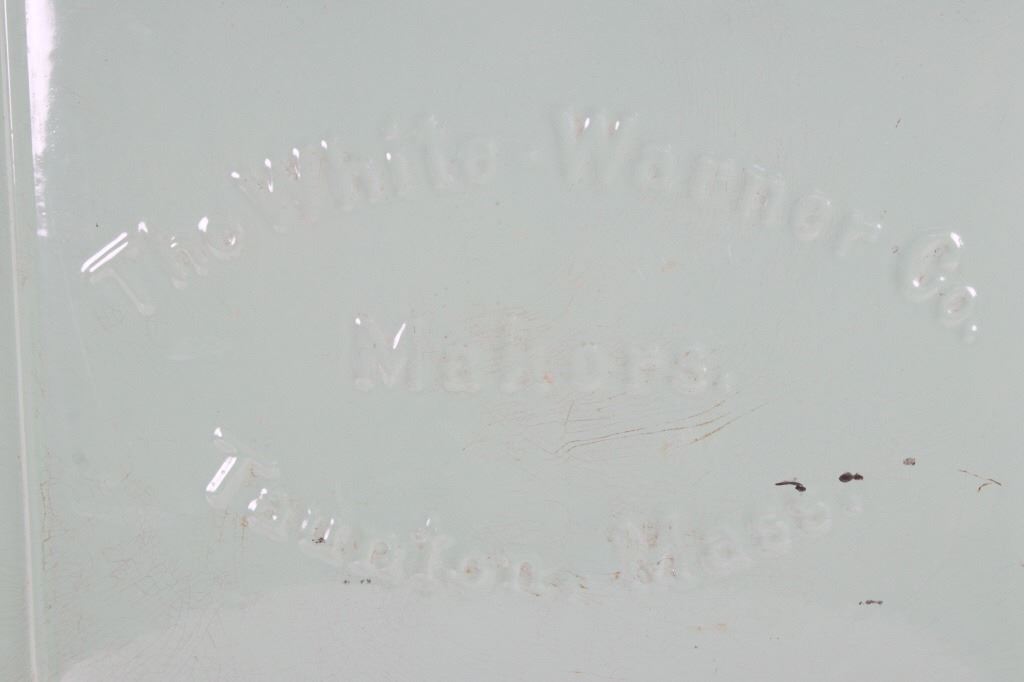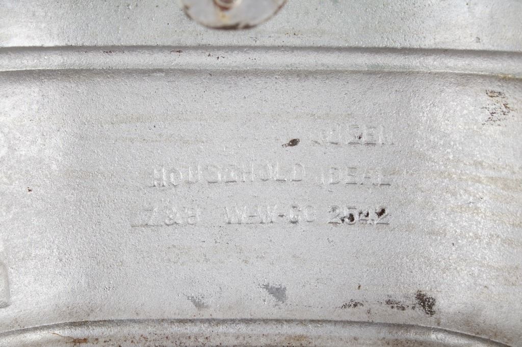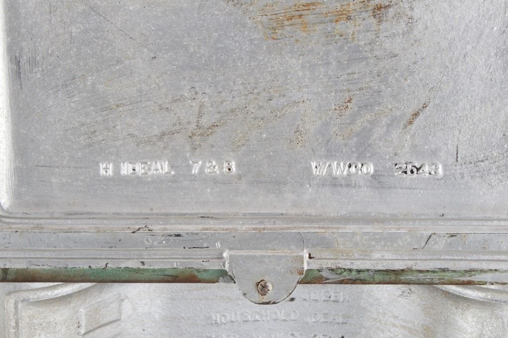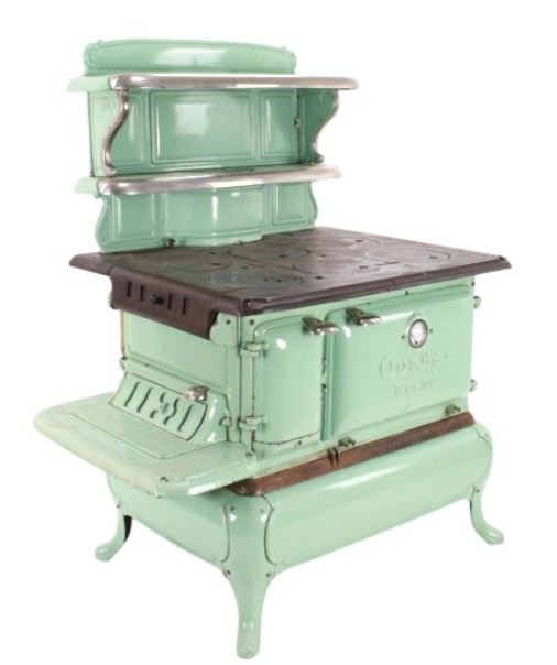 Featured in this lot is this White Warner Quaker Grand porcelain enamel cast iron stove circa 1890-1910 in a unique and rare original color. The stove features a wonderfully and professionally crafted cast iron and porcelain enamel construction that features six total stove top openings that are opened with a leveled tool and features a flute opening that is winded through two shelves. The stove is trimmed in cast iron trim with a nickel finish. The stove is marked as follows: Quaker Grand - The White-Warner Co Makers. Tauton, Mass. - Bake 8-272 Kindle - H Ideal 7&8 WW Co. 2546. This stove features multiple doors with the oven showing a temperature gauge on the front of the door with a kindling door next to it and a side vent on the left side of the stove. The condition of this of this stove is good with some wear to the to the cast iron and porcelain enamel but otherwise shows good overall condition. The measurements of this stove are 54 3/4" x 48" x 31 1/2".