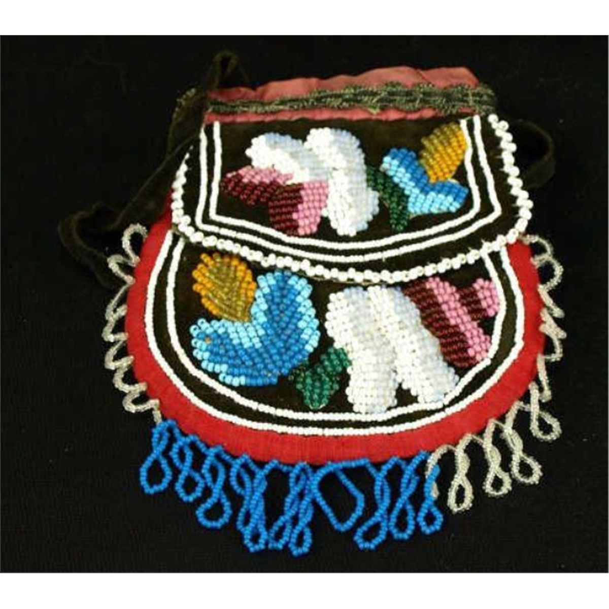 C. 1890's Iroquois bag With beaded fringe and flap.