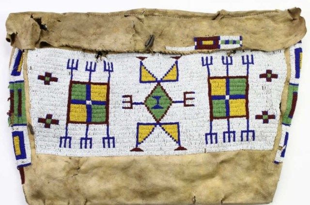 beaded to front and sides, nicely shadow boxed. Bag 21" X 15". Est. 1000-1800