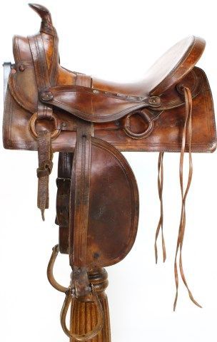 showing very nice original condition, Sam Stagg rigging, Cheyenne roll, 13 1/2" seat, original lining, great color. Est. 500-900