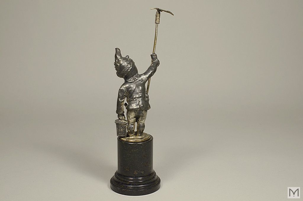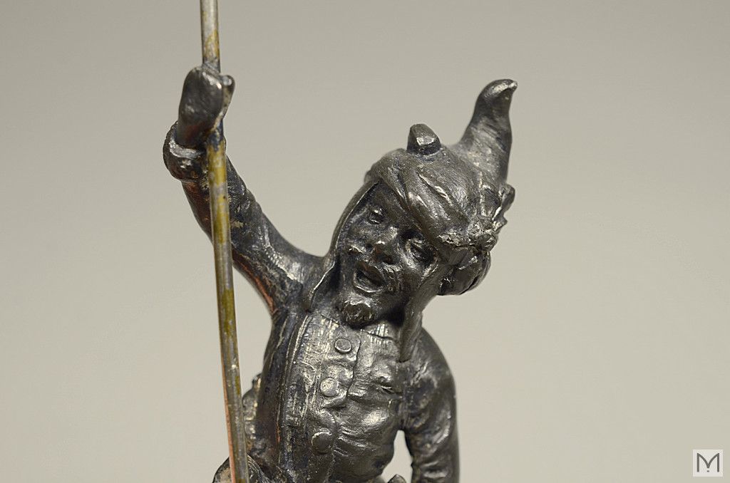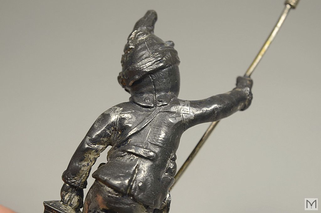 C.1900 Antique Royal Hampshire? Unusual Pewter Figure on Hardstone Base