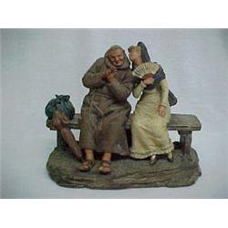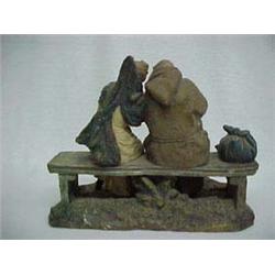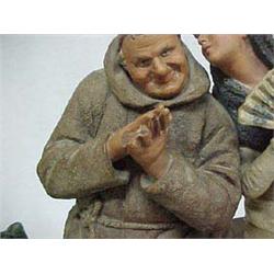 C. 1900 German Pottery Figurine, Seated Monk & Spanish Lady