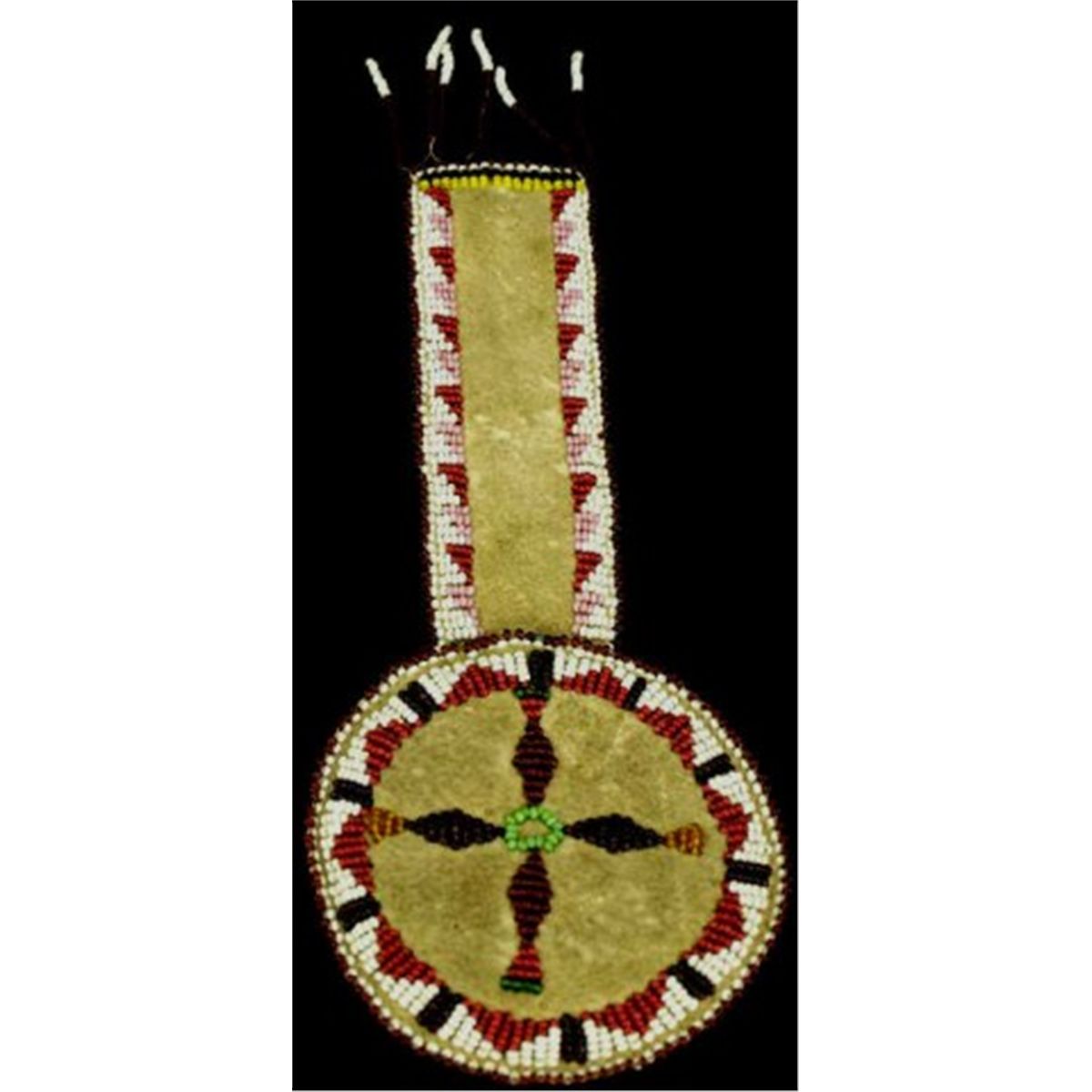 C. 1900 beaded on leather Apache watch case 9 1/2" long, good condition, missing several of the beaded drops, remainder near excellent.