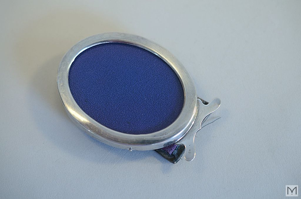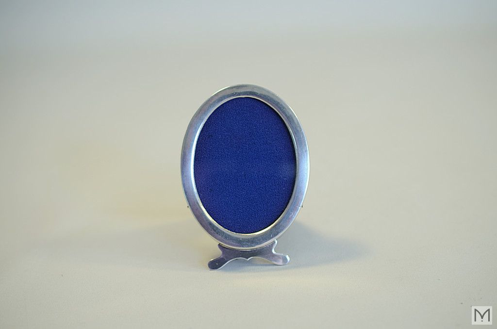 C. 1910 Antique Hallmarked Birks Sterling Oval Picture Frame - Original Silk. Marked: Birks - Sterling