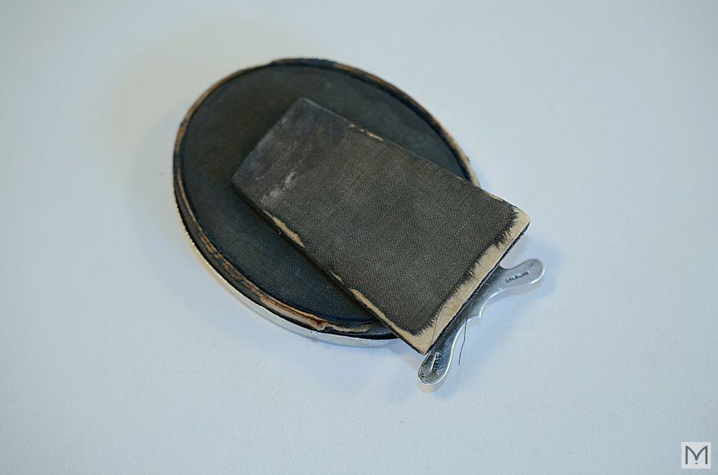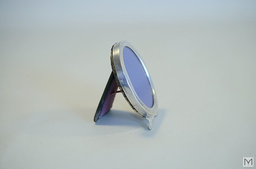 Very Fine Antique Condition. Minor surface scratches and wear from intended use noted. Silk backing fabric shows heavier wear to edges and 'stand' portion.