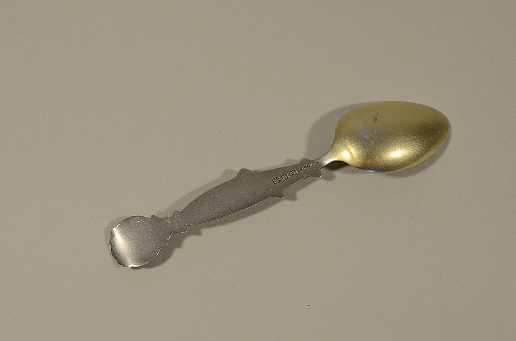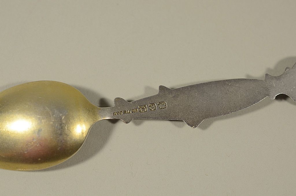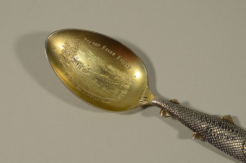 C. 1910 Canadian Parcel-Gilt Sterling Souvenir Spoon "Fraser River Salmon" - Fraser River Bridge, New Westminster, B.C. Ellis Maker.