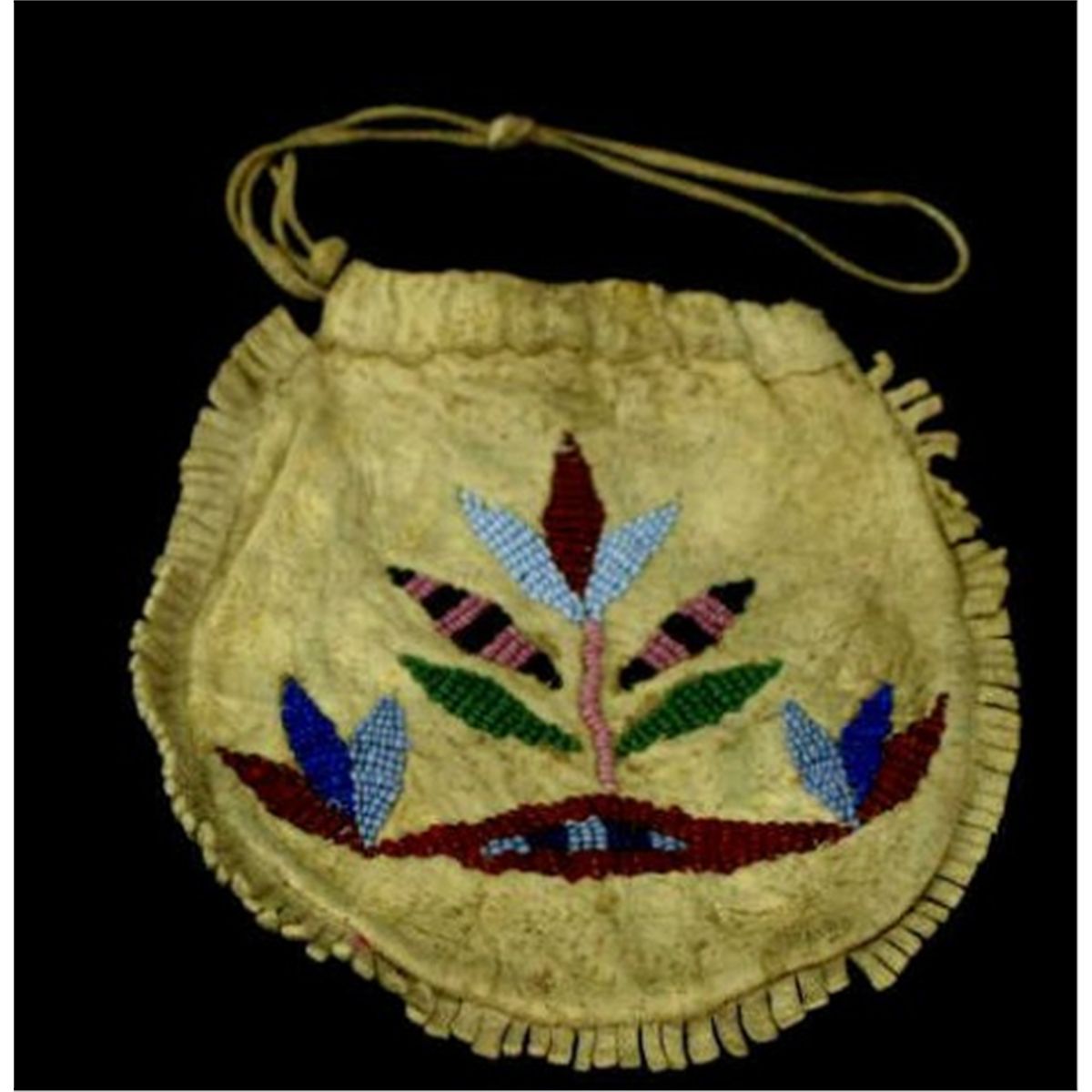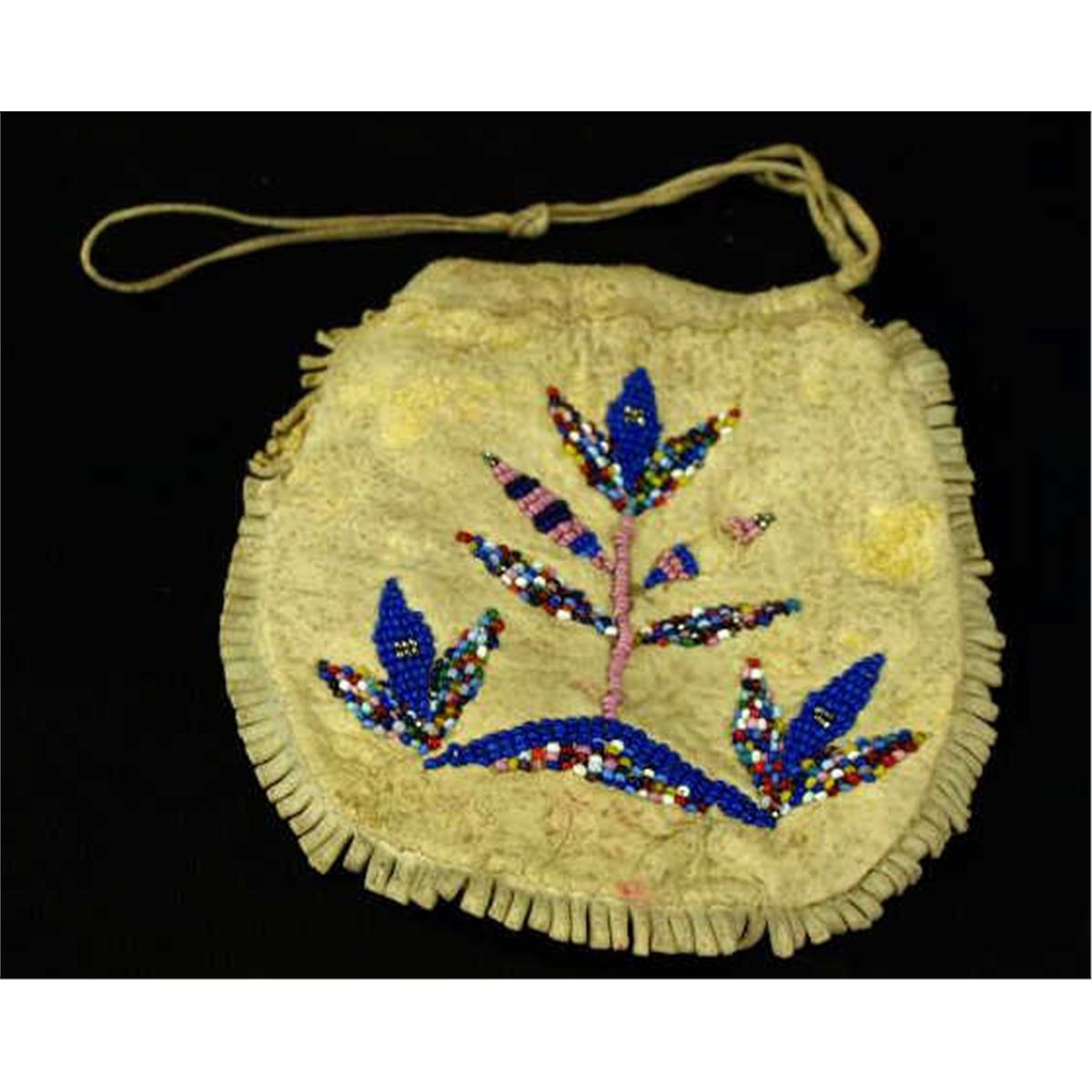 C. 1910 Eastern Sioux drawstring bag 5" long, beaded to both sides.