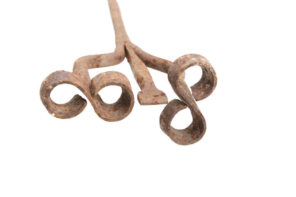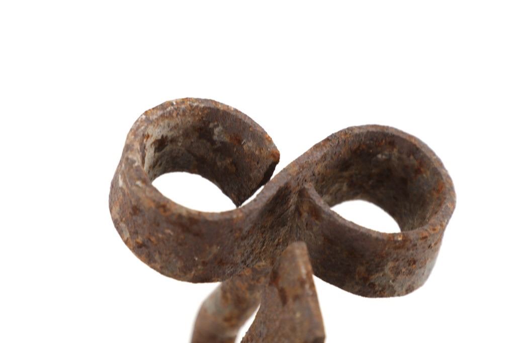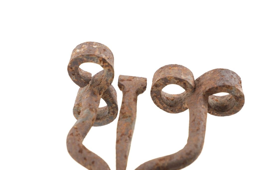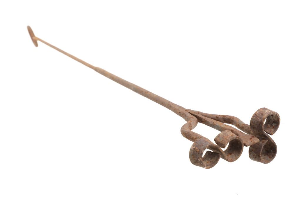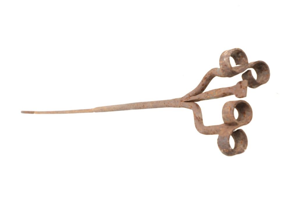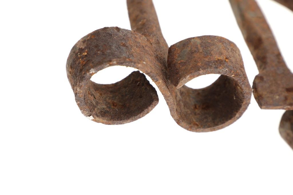 Featured in this lot is this 8 Bar 8 branding iron mid east Montana circa 1911-1920. The branding iron features blacksmith construction that shows a sucker rod construction with a triple split frame attached to the brand which shows an 8 with a bar and a horizontal 8. The brand and age was identified using the Montana State Library Montana History Portal registry and shows a reference number of '2418'. The condition of this branding iron is well preserved with oxidation due to the age of the branding iron but otherwise shows no obvious signs of damage. The measurements of this branding irons is 48 3/4" x 6 7/8" x 3 5/8". The collective weight of this branding iron is 4lb 6oz.