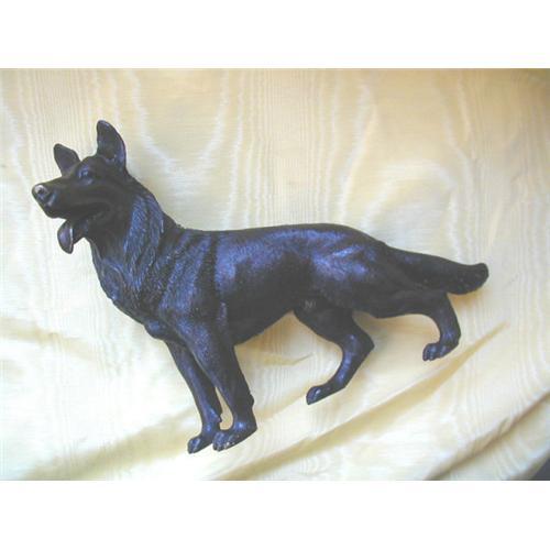 The shepard is 12" long nose to tail x 8" high. He wears a collar and is standing in an alert position. The head is well defined with details. This is a fine collectable for bronze dog collectors.