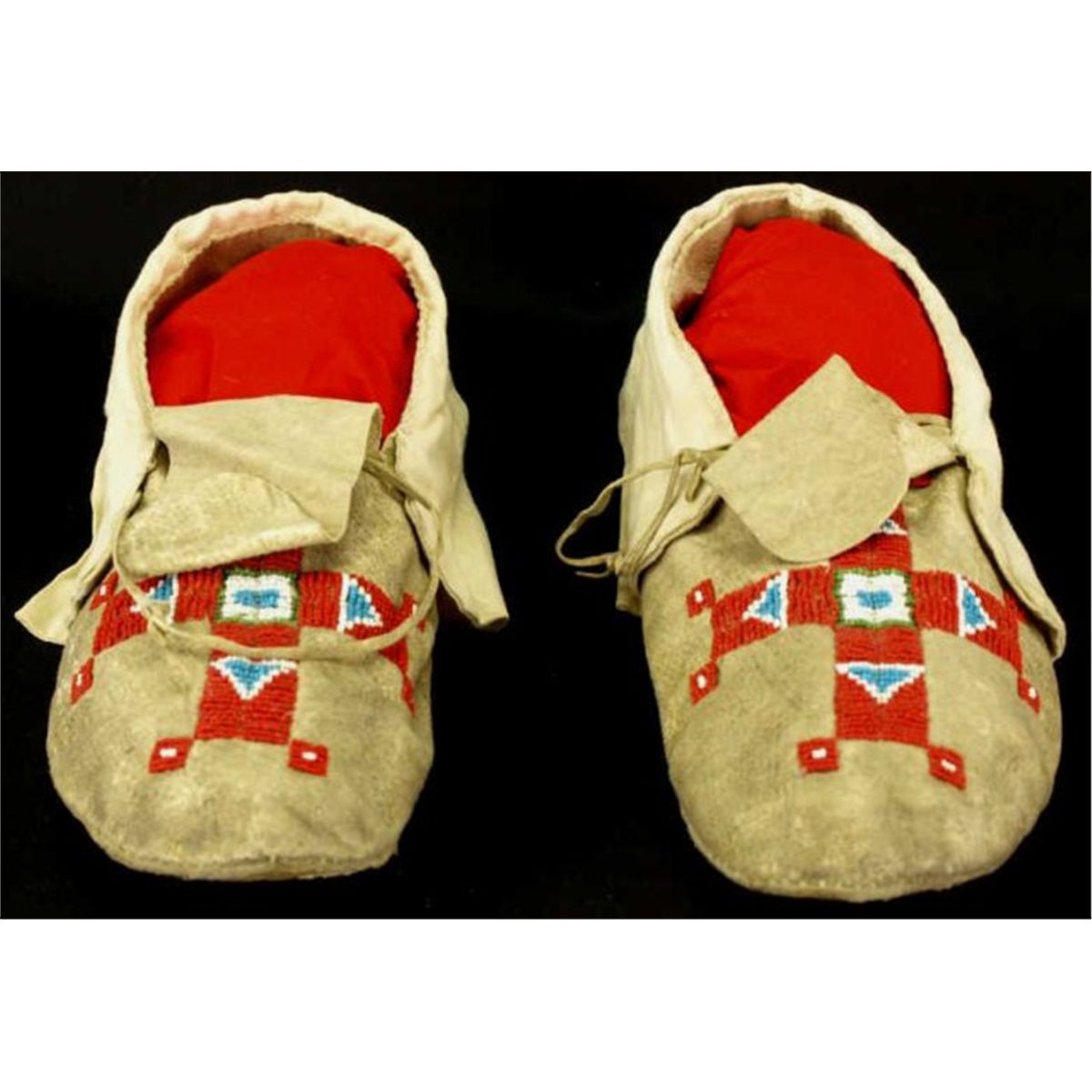 C. 1915 Sioux moccasins with beaded crosses, collected in Philip SD, 11" long.