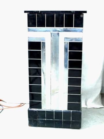 with cash drawer. Tiled sides and base in green and black. Brass tag on back reads "PAIDAR Co." Measures 41" X 18" X 18".