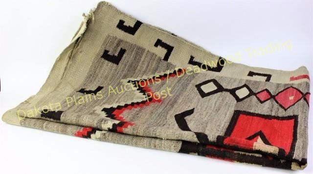 C. 1920's -1930's Navajo rug showing used but generally good condition, some fray to edges and overall dark from use. Nice size 52" X 72". Est. 200-400showing used but generally good condition, some fray to edges and overall dark from use. Nice size 52" X 72". Est. 200-400