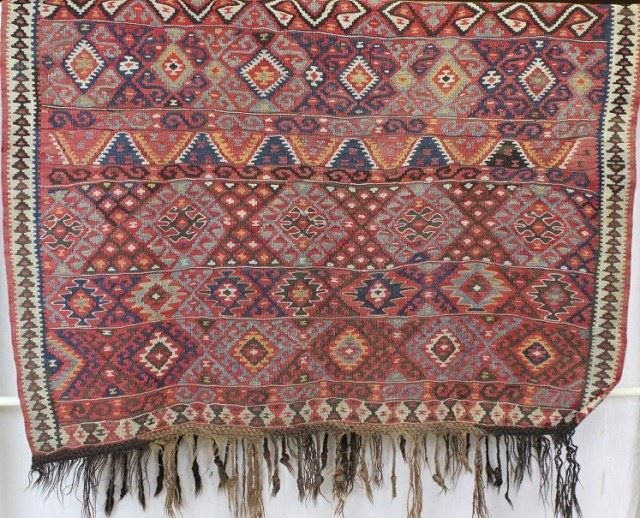 57" X 95", wonderful old rug showing good condition. Est. 450-800
