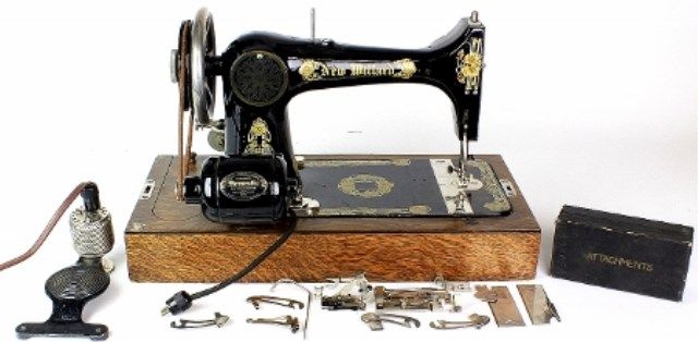 in great quartersawn oak carry case all showing fine condition, includes owners manual, motor and accessories. Est. 100-200