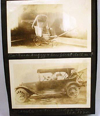 C. 1921 PHOTO ALBUM W/ PHOTOS - Incl. Babies, Wooden Wagon, Baby in Wicker Buggy, Horse Drawn Wagon, Little Girl with Doll, More!