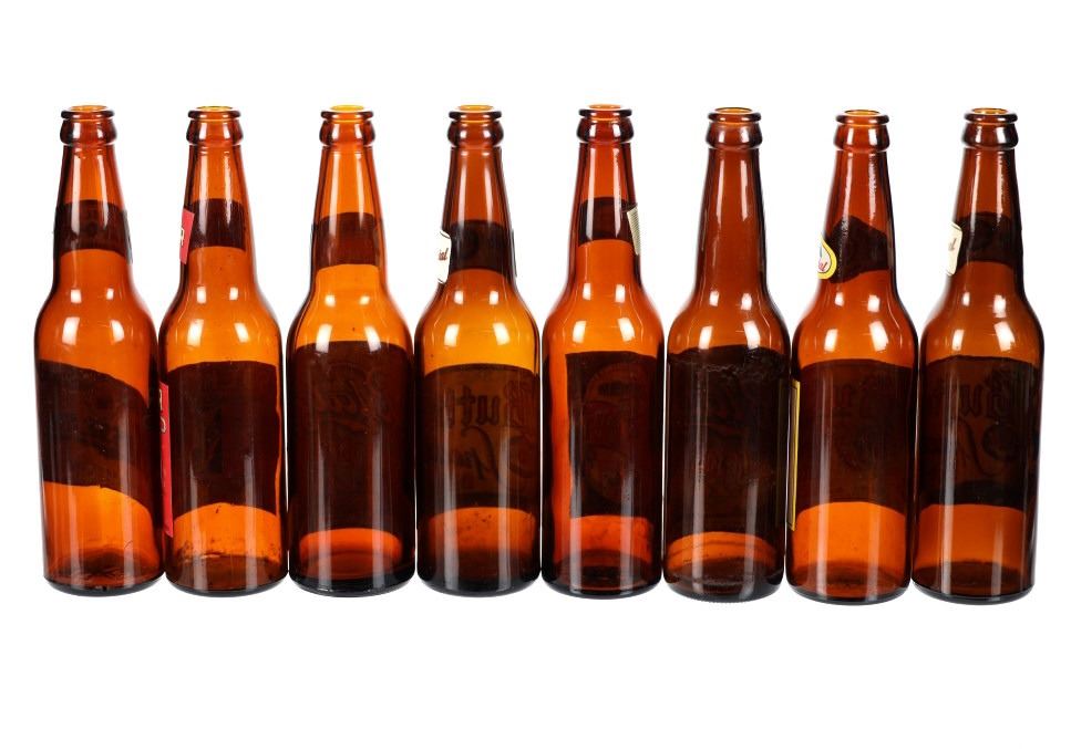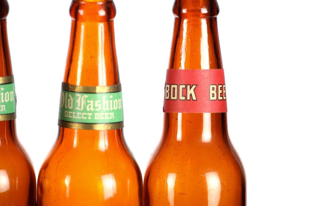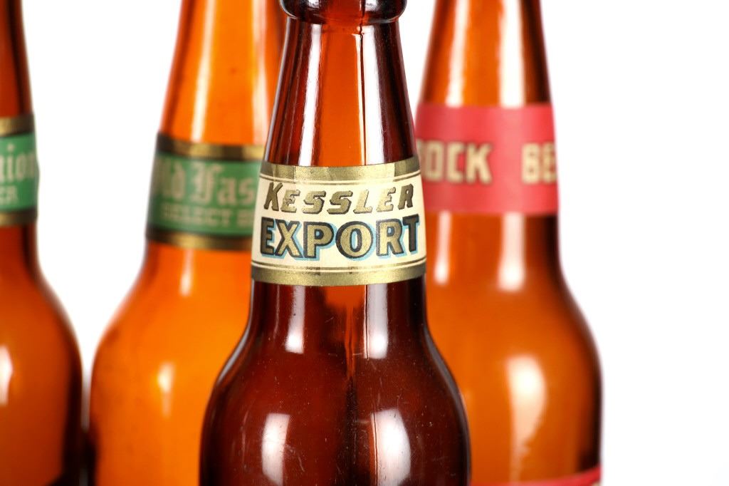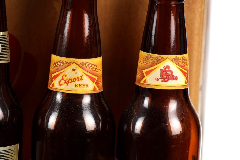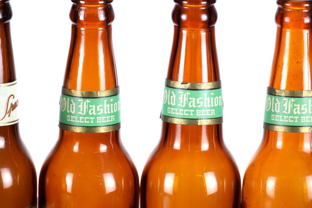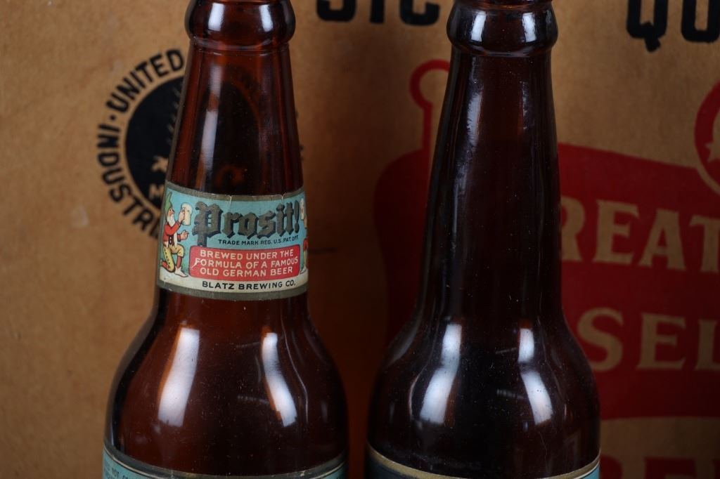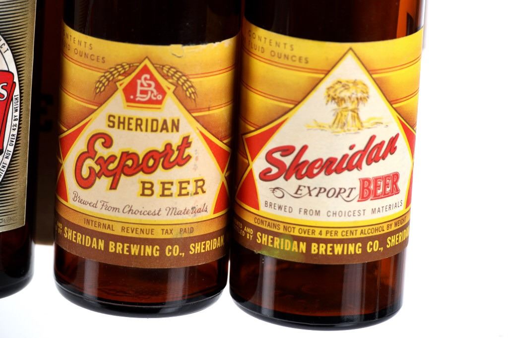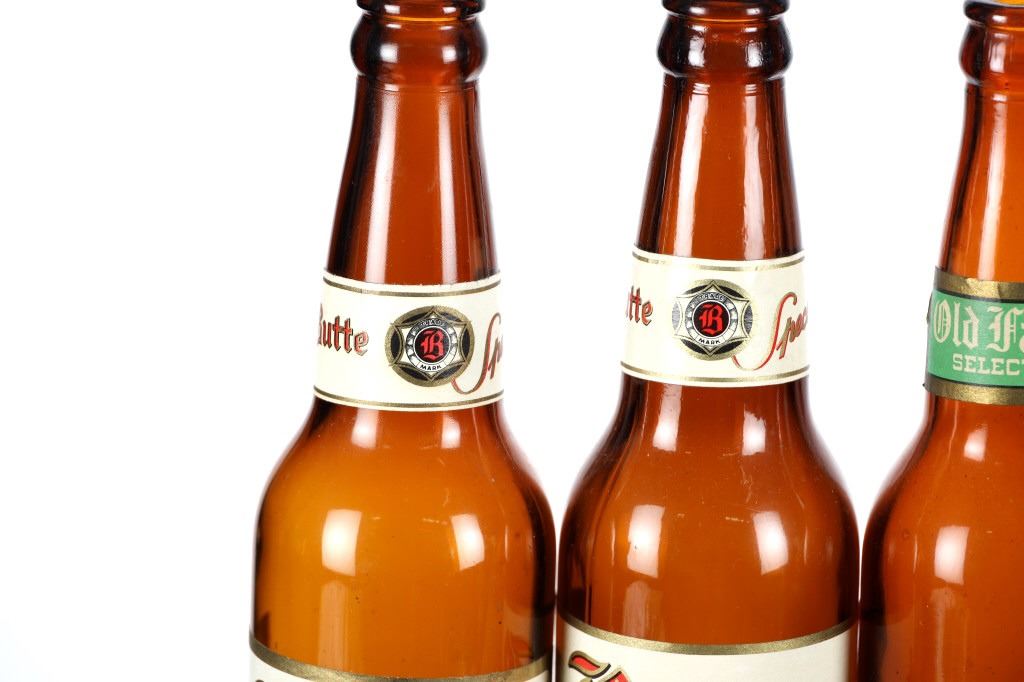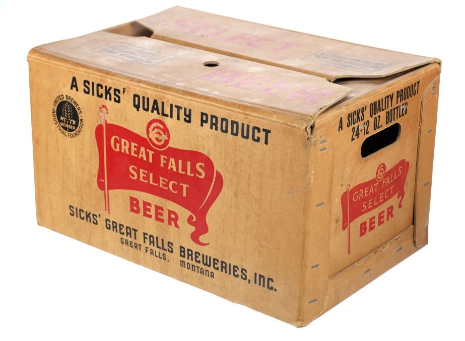 For your consideration is this collection of 17 National brand and Montana brand beer bottles from 1930-1950s that come in a Great Falls Select beer bottle box. In this collection the brands included are five Butte Special beer bottles from the Butte Brewing Co., three Old Fashion Select Beer bottles from Billings Brewing Co., one Billings Pale Ale beer bottle from Billings Brewing Co., two Blatz Old Heidelberg Beer bottles from Blatz Brewing Co. in Milwaukee, Wisconsin, one Bock Beer from Anaconda Brewing Co. in Anaconda, Montana, two Sheridan Export Beer bottles from the Sheridan Brewing Co. in Sheridan, Wyoming, two Great Falls Beer bottles from Great Falls Breweries Inc. in Great Falls, Montana, and the last being one Kessler Beer bottle from the Kessler Brewing Co. in Helena, Montana. All the bottles show the same style. All the logos are in good condition with no signs of obvious damage. The bottles measure 2 3/8" in diameter and 9 1/2" in height.