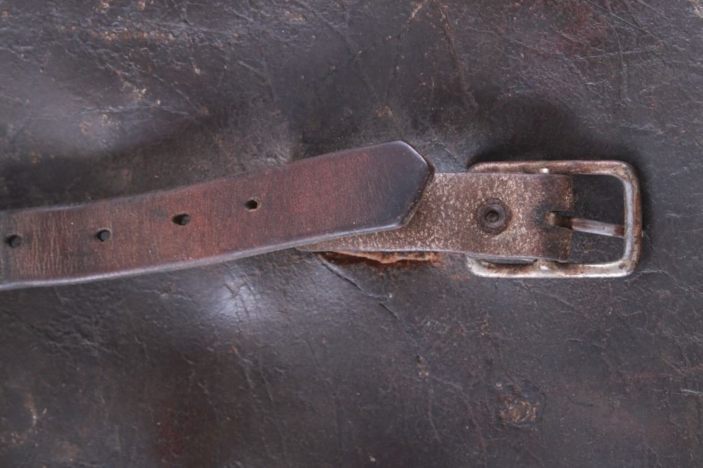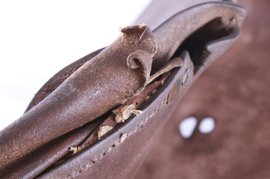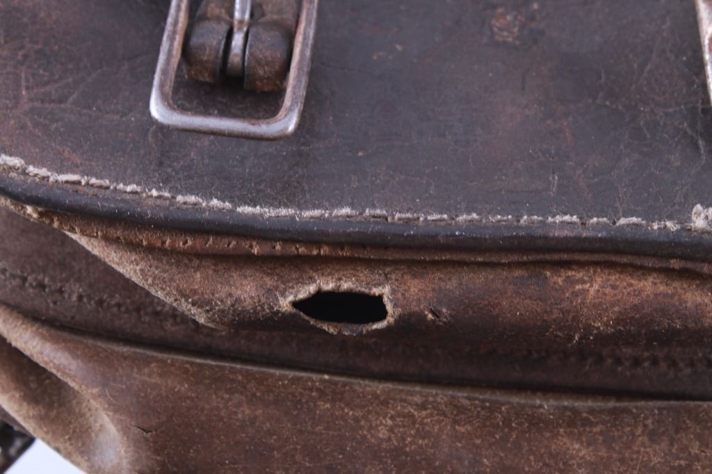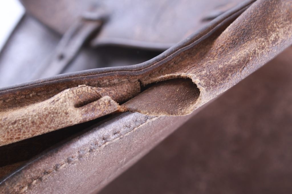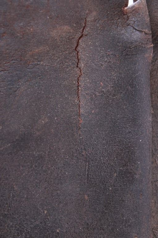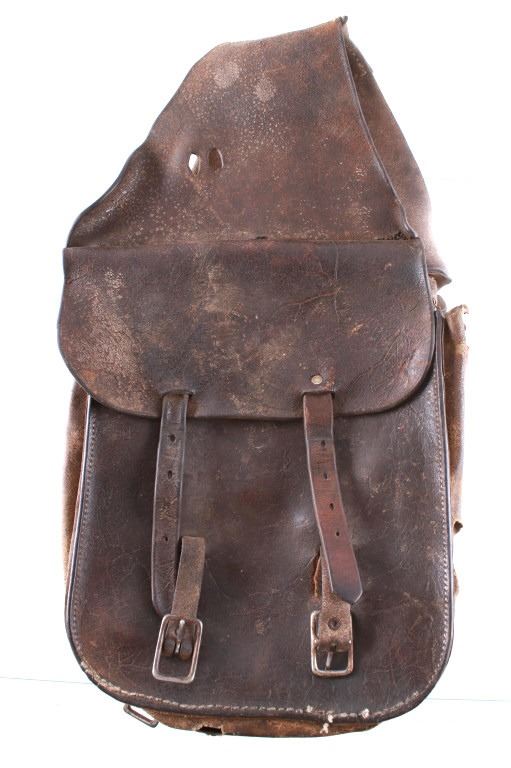 Featured in this lot is this Montana handmade western leather saddle bags circa 1940's. The saddle bags are constructed of a rich brown leather, and utilize brass rigging and utilizes holes to the leather to strap the bags to a saddle. The condition of this saddle bags is fair with some wear to the central strap and two tears in the straps the buckles are connected to. The measurements of these pair of saddle bags laid out are 41 3/4" x 11"