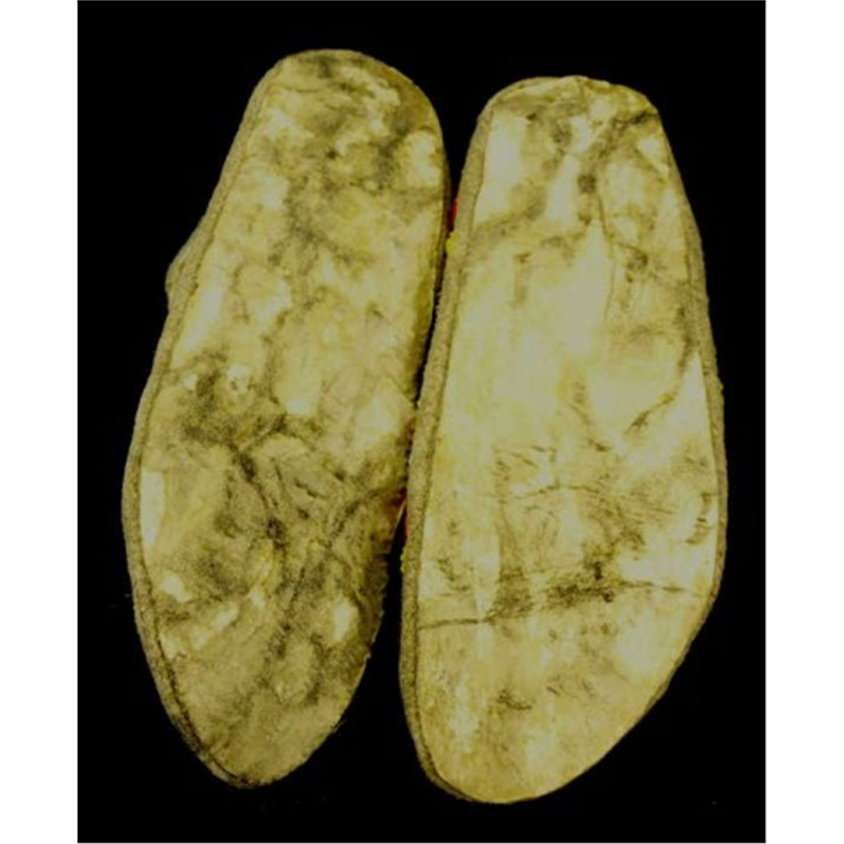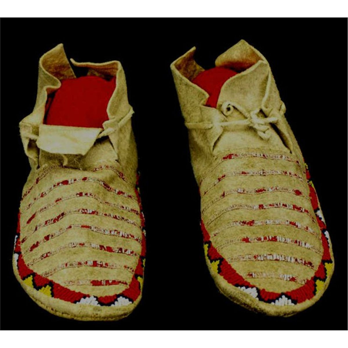 C. 1940's Sioux quilled bar pattern moccasins with hard soles, 11" long.