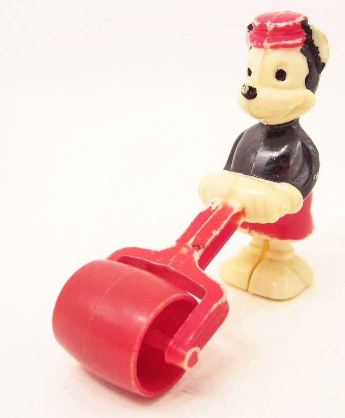 Approx. 3.25" tall. Mickey walks behind a yard roller.