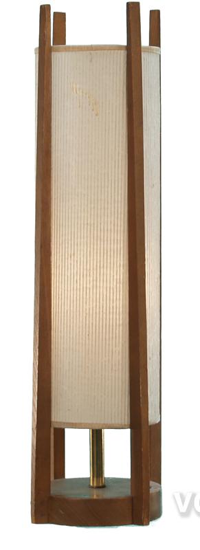 C 1950's Floor Lamp, Wood w/ Shade, Works - 26" Tall