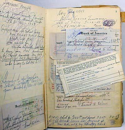 C. 1951 LARGE JOURNAL / LEDGER - Incl. Addresses, Notes, Expenses, Business Cards, Irish Hospital Sweepstakes Ticket, Checks, Bank Papers, More!