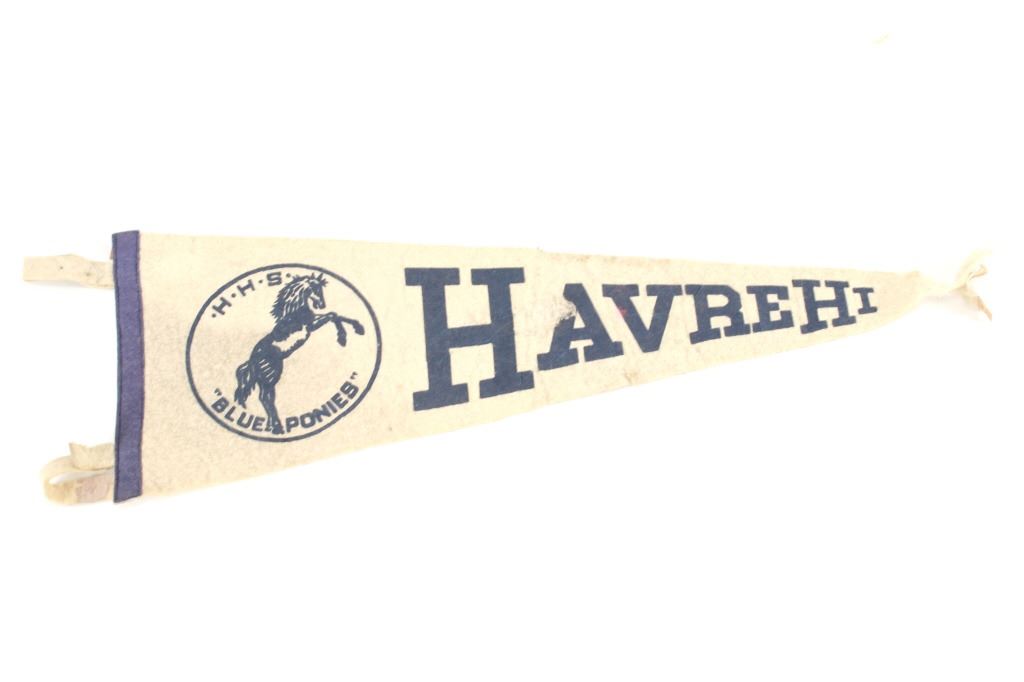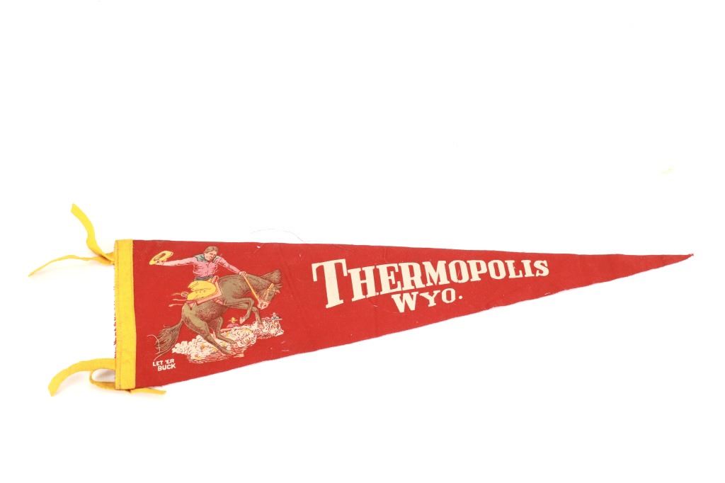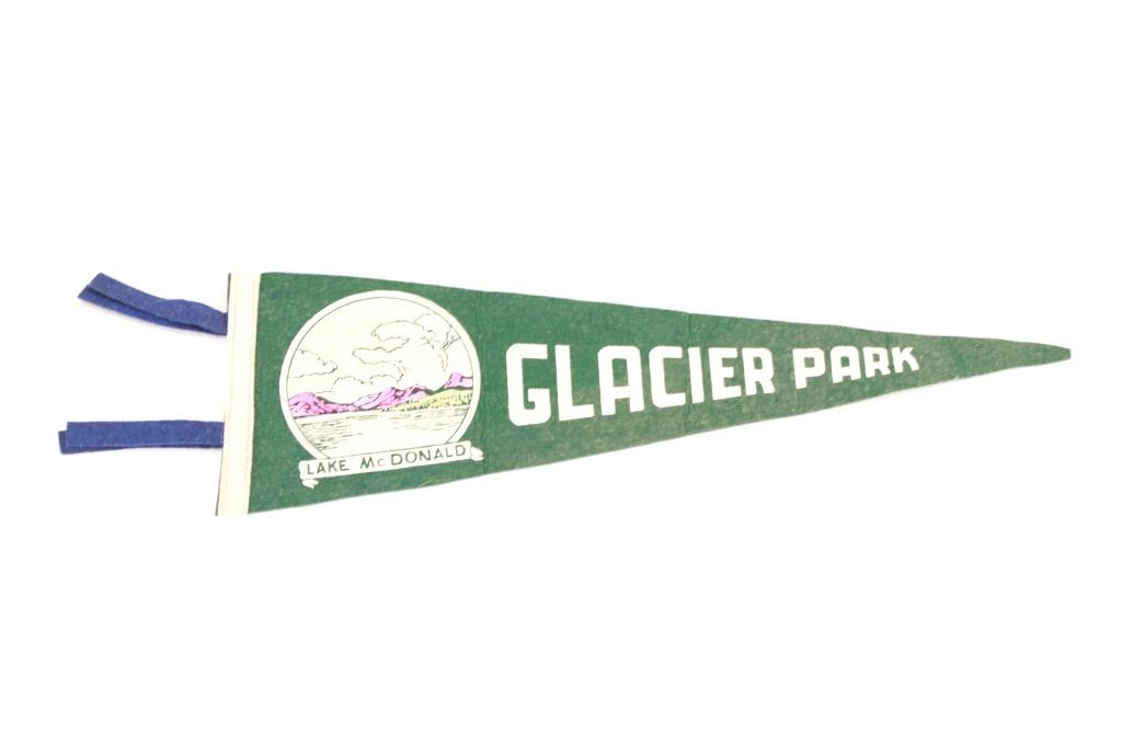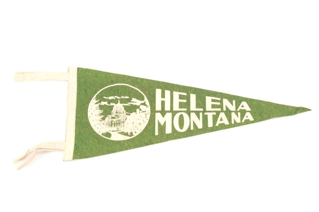 Featured in this lot is this collection of twenty (20) Montana and Wyoming felt pennant flags circa mid to late 1900s. The collection shows many different sized and colored pennant flags from locations around Montana and Wyoming such as: Park High School Livingston, University of Wyoming, Glacier National Park, Bear Lodge Wyoming, Havre High School, and Thermopolis Wyoming to name a few. All the pennant flags show good condition with no signs of obvious damage. Some show some wear from their vintage age with creases but overall are in good display condition. The smallest pennant flag measures 4 1/4" L x 2 3/8" W, while the largest one measures 29 3/4" L x 10 7/8" W.