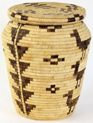C. 1960's Papago lidded basket with geometric and animal effigys showing some rub and loss, 15" over