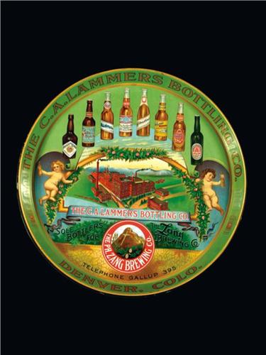 C.A. Lammers Bottling Co. Tin Serving Tray, Denver, CO. This is a beautiful tray with great color and graphics. We sold the Reverse Glass Sign for this Bottling Company in our last auction for $28,600.00. Excellent original condition. 12 inch dia.