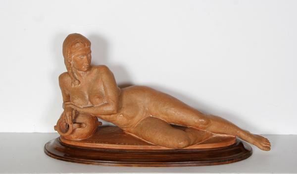 C.A. Mazzel, Reclining Nude, Terracotta Sculpture