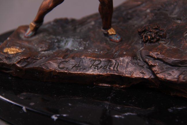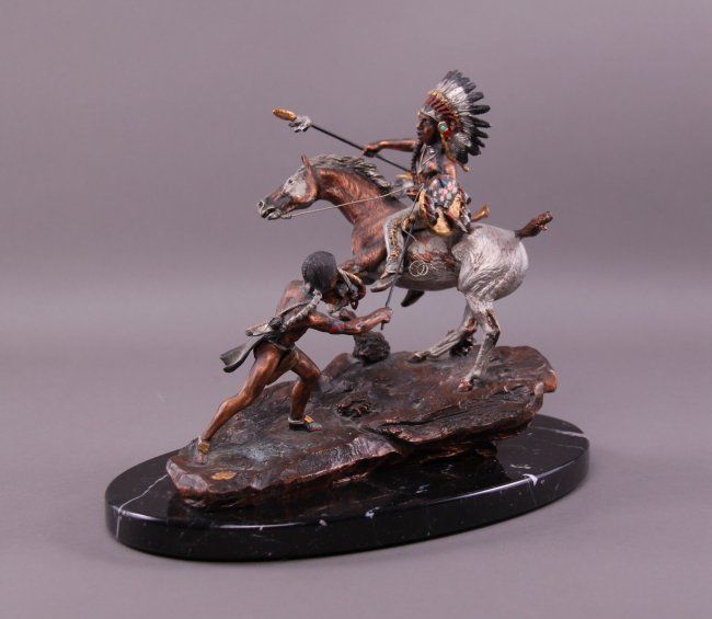 C.A. Pardell, beautiful full color, limited edition (208/950) Legends series bronze titled "First Coup"; on custom base.(Size: See last photo for measurement.) Photos are part of the description representing the condition report. Pangaea Auctions urges Bidder's to view all attached photos.
