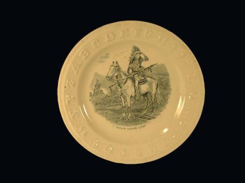 C.A. and Sons Baby Plate depicting Sioux Indian Chief and alphabet rim. No chips or cracks. 7 1/2 inches dia.