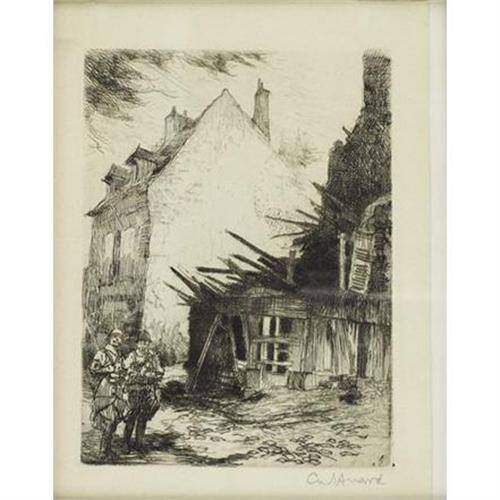 <B>C. AVARD</B></I><BR>Village Street Scene<BR>Etching<BR>7.5 x 8.5in.<BR>Signed lower right<BR> 1 <BR><BR><B>Condition Report:</B> Excellent condition, modern frame with minor scratches to surface