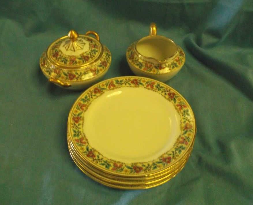 1- creamer with sugar bowl & 4 Salad/Dessert plates