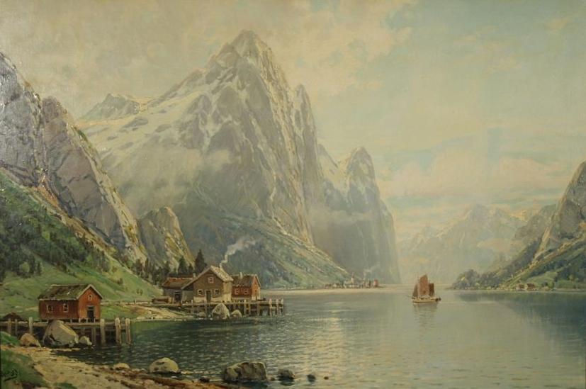 C. Bertold (Swiss, b.1870) Alpine Lake Scene, Oil on canvas,