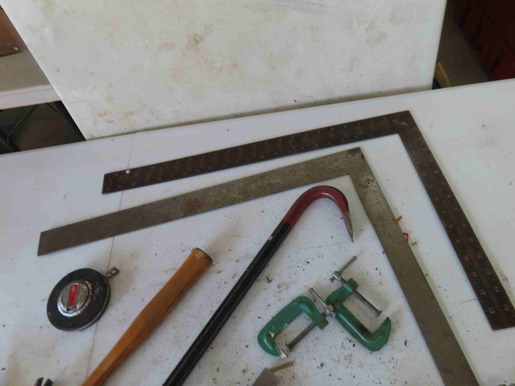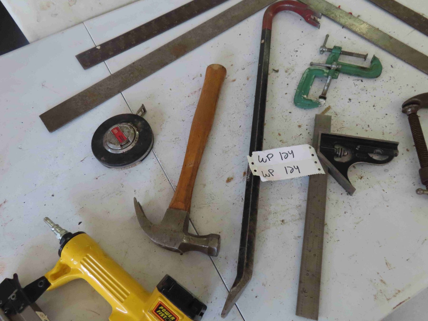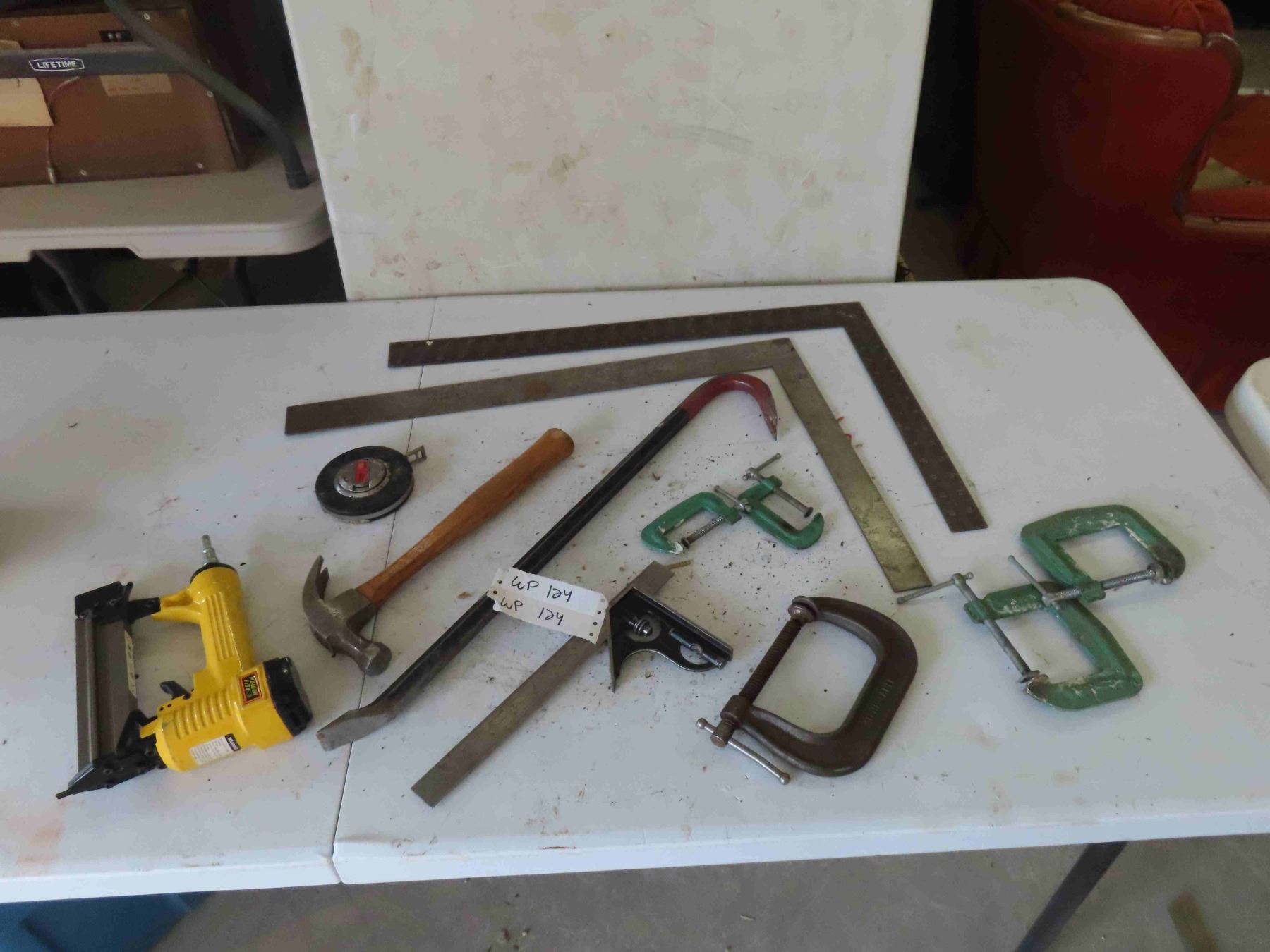 C Clamps , Square , Wrecking Bar , Hammers , Air Brad Nailer