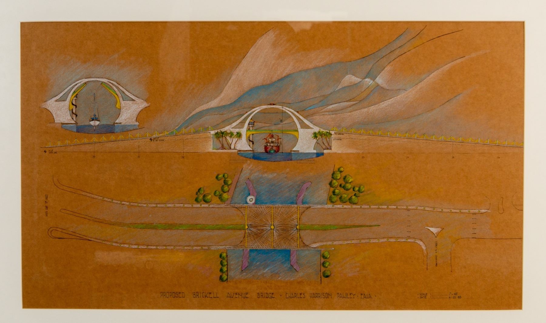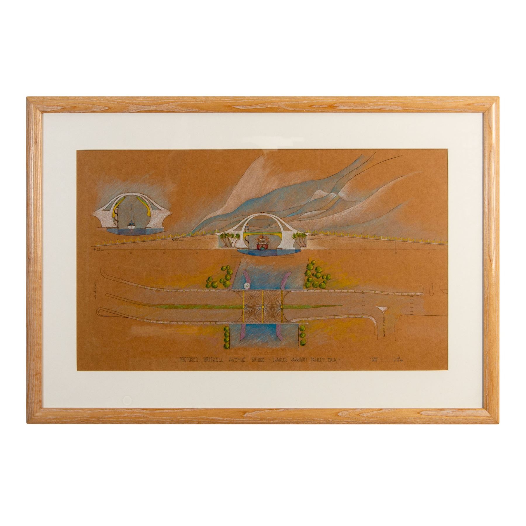 C.H. Pawley, Architect Drawing, Brickell Avenue Bridge, Miami