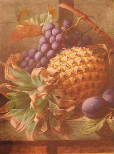 C H Slater; a fine framed and glazed watercolour still life of a pineapple, grapes and plums, sig...