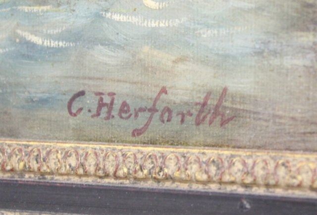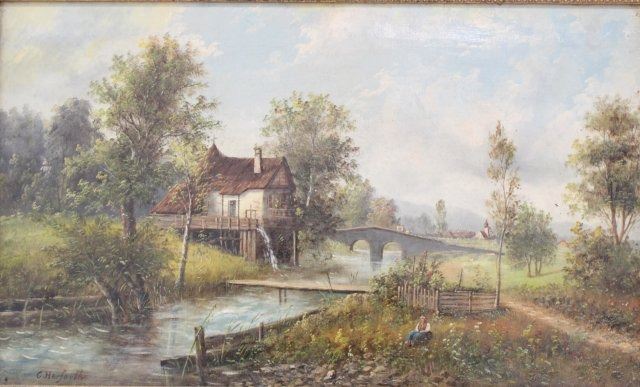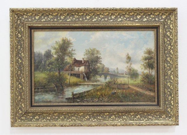 Oil on canvas. Signed lower left. Approx. 12 1/2" H x 20 1/2" W without frame, 19 1/2" H x 27 1/2" W with frame.