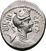C. Hosidius C.f. Geta. Denarius, 68 BC. Obv. III VIR GETA. Diademed and draped bust of Diana right, with bow and quiver over shoulder. Rev. Boar right, wounded by spear and attacked by hound; C HOSIDI C F in exergue. Cr. 470/2. B.1. AG. g. 4.12 mm. 18.50 EF/AboutEF. Brilliant and superb. Repubblica Romana. Cr. 470/2. B.1. AG. g. 4.12 mm. 18.50