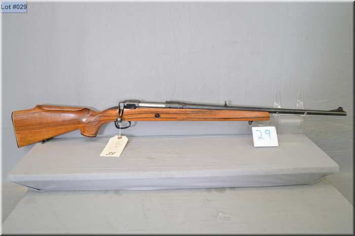 C.I.L. Mod 950 C .243 Win cal mag fed bolt action Rifle w/ 22" bbl [ blued finish, barrel sights, factory tapped for bases, checkered Monte Carlo style pistol grip stock w/ roll over cheek piece , sling swivels, note : clip mag ejector inside hole possibly a part missing ? on right side of stock ] Ser # 110172