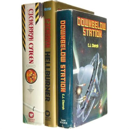 <B>C. J. Cherryh: Three Signed First Editions.</B></I> Includes the following:<BR><B><I>Downbelow Station.</B></I></B></I> (New York: Daw Books, Inc., 1981), second edition, 439 pages, blue boards, 8vo, dust jacket clipped. Condition (book/ dj): very good/ very good.<BR><B><I>Cyteen.</B></I></B></I> (New York: Warner Books, Inc., 1988), first edition, 680 pages, off white boards, 8vo, dust jacket. Condition (book/ dj): fine/ fine.<BR><B><I>Hellburner.</B></I></B></I> (New York: Warner Books, Inc., 1992), first edition, 343 pages, mustard boards, 8vo, dust jacket. Condition (book/ dj): fine/ fine.<BR><BR><b>Shipping:</b> Books & Catalogs (<a target="_blank" href="http://www.heritageauctions.com/common/shipping.php">view shipping information</a>)