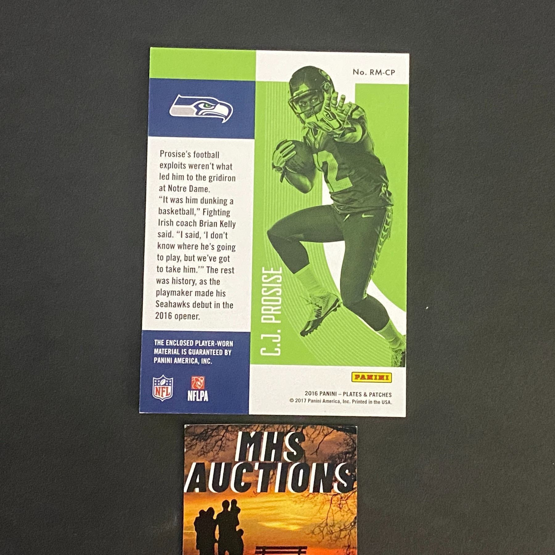 C.J PROSISE SEAHAWKS 2016 PANINI PATCH CARD #34/50